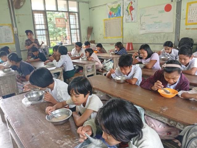 အဟာရကျွေးမွေးရာတွင် အမှတ်(၇)အခြေခံပညာမူလတန်းလွန်ကျောင်းမှကျောင်းအုပ် ဆရာမကြီး ဒေါ်အေးအေးမြင့်နှင့် ဆရာ/ဆရာမများပူးပေါင်းပြီး ကျောင်းသား၊ ကျောင်းသူ ၁၃၉ဦးအား အာဟာရ ဆန်ပြုတ်တိုက်ကျွေးကြောင်းသိရသည်။