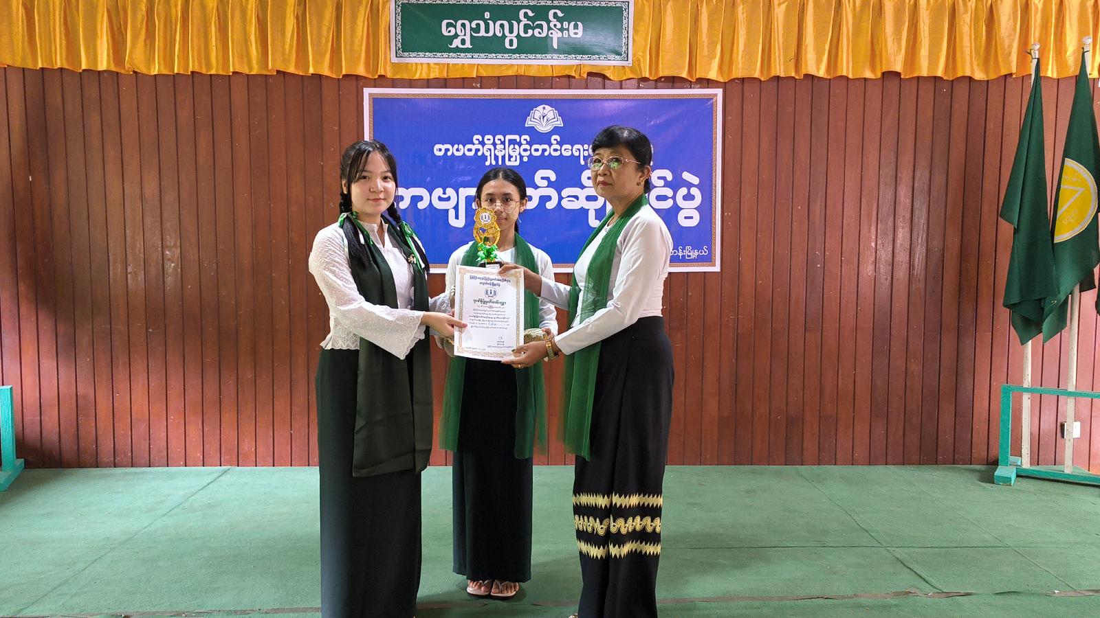 ထို့နောက် ကျောင်းသား/ကျောင်းသူများ စိတ်ပျော်ရွှင်စေရန်နှင့်အချင်းချင်းစည်းလုံးညီညွတ်စွာ ဆောင်ရွက်တတ်စေရန်ရည်ရွယ်ပြီး ကဗျာရွတ်ဆိုပြိုင်ပွဲနှင့်ဂိမ်းကစားနည်းပြိုင်ပွဲများကို ပြုလုပ် ပေးခဲ့ပြီး၊ ဆုရရှိသည့် ကျောင်းသား/ကျောင်းသူများကို မြို့နယ်တာဝန်ရှိသူများက အမှတ်တရဆုများ အသီးသီးပေးအပ်ချီးမြှင့်ကြသည်။