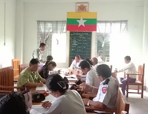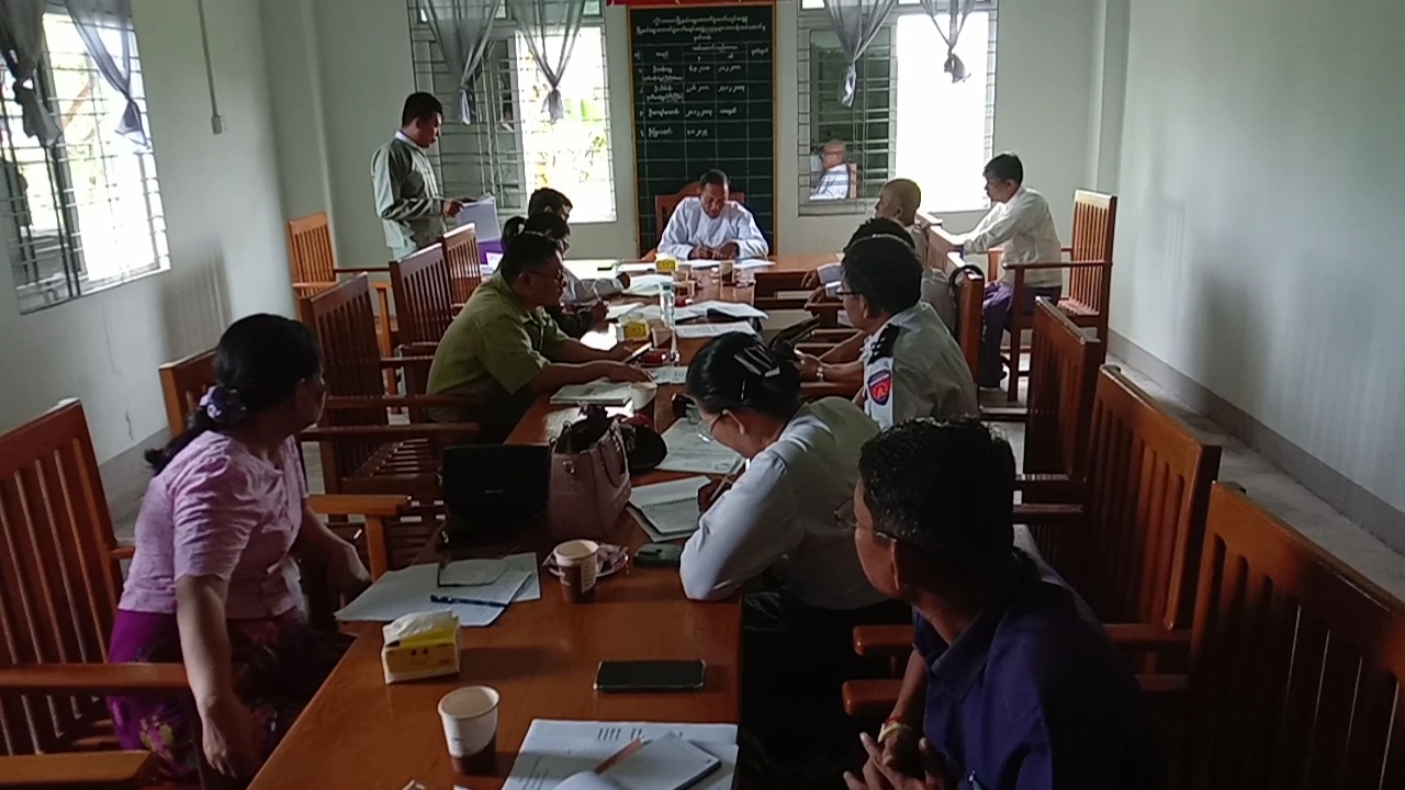 ဆက်လက်၍မြို့နယ်ရွေးကောက်ပွဲကော်မရှင်အတွင်းရေးမှူးနှင့်အဖွဲ့၀င်များက တစ်ဦးချင်းမိတ်ဆက်ပြီးရွေးကောက်ပွဲနှင့်ပတ်သက်၍ ကြိုတင်ပြင်ဆင်ဆောင် ရွက်ရမည့်လုပ်ငန်းများအား အပြန်အလှန်ဆွေးနွေးလျက်ရှိကြောင်းသိရသည်။