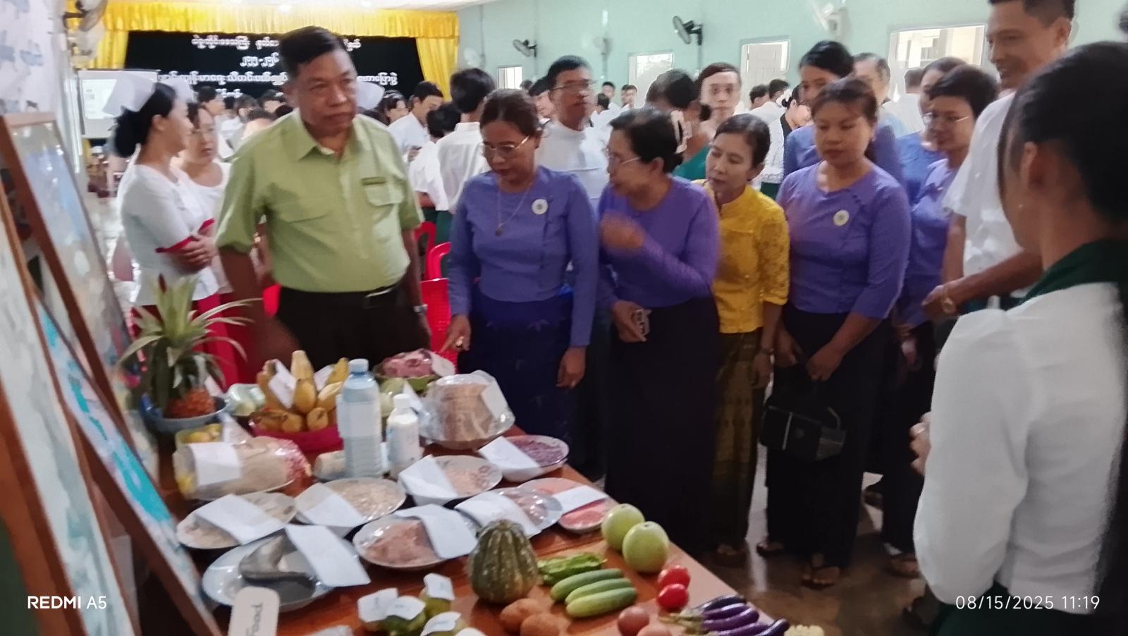 ထို့နောက် ကျောင်းသား ကျောင်းသူများကအစာအုပ်စု သုံးမျိုးမျှတစွာပါဝင်သော နေ့လယ်စာများ(Lunch Box) အကြောင်းနှင့်ကောင်းမွန်သော စားသောက်မှု အလေ့အကျင့်ဖြစ်စေရန် နေ့စဉ်စားသောက်သင့်သောအစား အသောက်များအကြောင်းကို ရှင်းလင်းတင်ပြခဲ့ကြပြီး တာဝန်ရှိသူများက ခင်းကျင်းပြသထားသော အစားအစာ အုပ်စုသုံးမျိုးအား ကြည့်ရှုစစ်ဆေးကြသည်။
