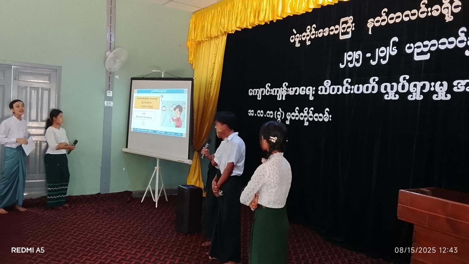 ထို့နောက် တာဝန်ရှိသူများက ကျောင်းကျန်းမာရေး သီတင်းပတ်လှုပ်ရှားမှု အထိမ်းအမှတ် စာစီစာကုံးပြိုင်ပွဲနှင့် ကျန်းမာရေးအသိပညာ ဉာဏ်စမ်းပြိုင်ပွဲတို့တွင် ဆုရရှိသူများအား ဆုများအသီးသီးပေးအပ်ချီးမြှင့်ခဲ့ကြသည်။