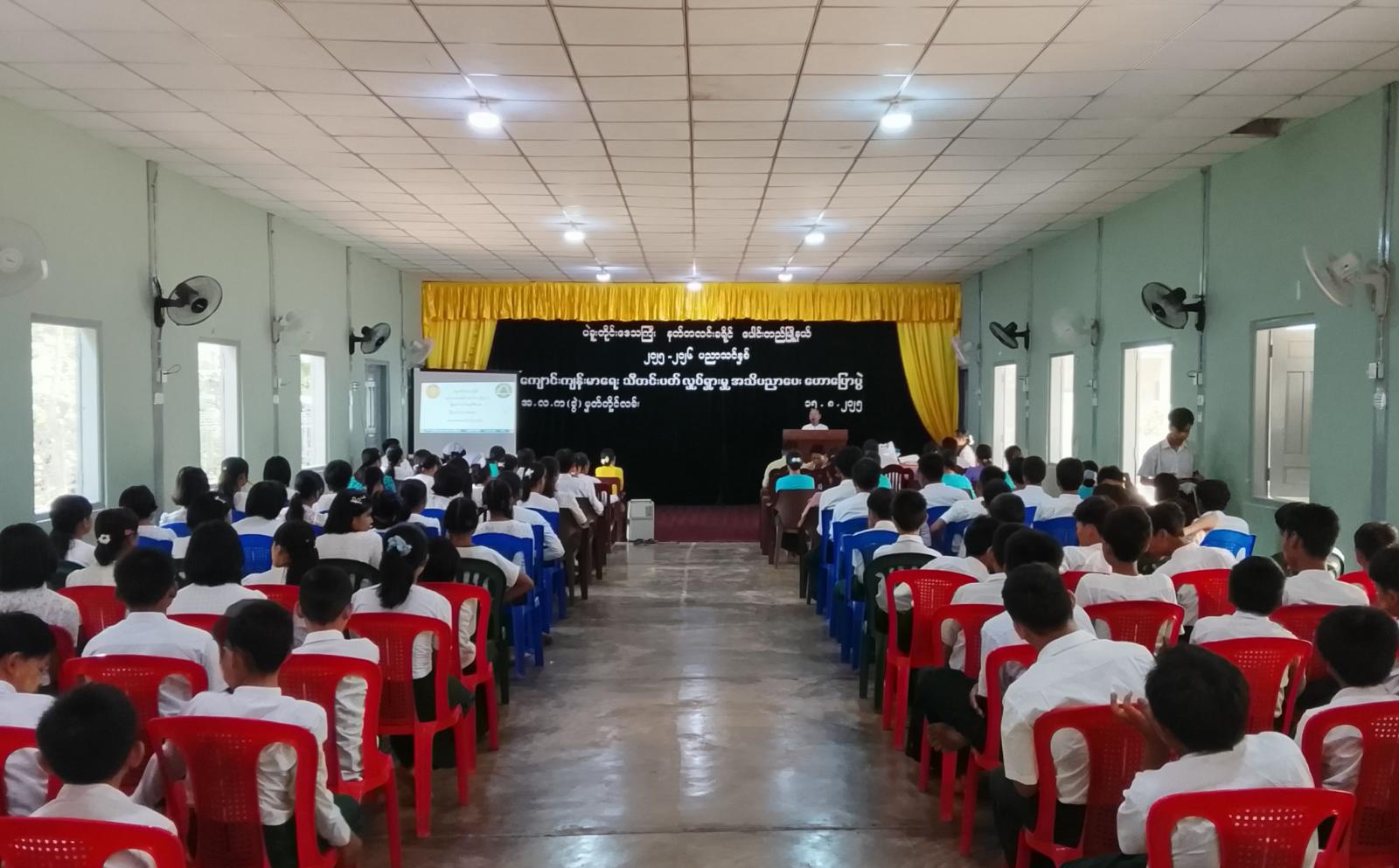ပထမဦးစွာ မြို့နယ်စီမံခန့်ခွဲရေးနှင့်အုပ်ချုပ်ရေးကော်မတီဥက္ကဋ္ဌ တက်ရောက်အဖွင့်အမှာစကားပြောကြားပြီး မြို့နယ်ပြည်သူ့ကျန်းမာရေးဦးစီးဌာနမှူး ဒေါက်တာ သန်းသန်းချစ်ကကျောင်းကျန်းမာရေးသီတင်းပတ်လှုပ်ရှားမှု ဆောင်ရွက်ရခြင်းနှင့်ပတ်သက်၍ ရှင်းလင်းပြောကြားကာ မြို့နယ်ပညာရေးမှူး ဒေါ်ခင်သင်းရီက ကျေးဇူးတင်စကားပြန်လည် ပြောကြားခဲ့သည်။