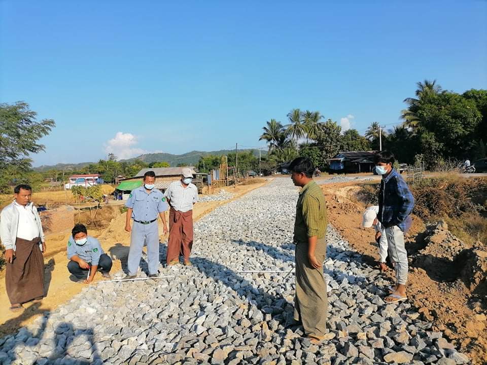 လှိုင်းဘွဲမြို့နယ်အတွင်း နယ်စပ်ဒေသဖွံ့ဖြိုးရေး ပြန်ထောင်စုရန်ပုံငွေကျပ်(၁၉၀.၈၄၂)သန်းဖြင့် မြိုင်ကြီးငူ အထူးဒေသ၊ ယခင်စစ်မှုထမ်းဟောင်းရွာ(သစ္စာအေးမြိုင်)ရွာ ကတ္တရာလမ်း(၆၀၀၀)ပေ လမ်းခင်းခြင်း လုပ်ငန်းကို ငွေတောင်တန်းကုမ္ပဏီမှ (၂၅.၁၁.၂၀၂၀)ရက်နေ့မှ လုပ်ငန်းများကို စတင်အကောင်အထည် ဖော်ဆောင်ရွက်ခဲ့ရာ လှိုင်းဘွဲမြို့နယ် ဖွံ့ဖြိုးမှုကြီးကြပ်ရေးရုံးမှ လက်ထောက်ညွှန်ကြားရေးမှူး ဦးရန်မျိုးအောင်နှင့် အဖွဲ့ဝင်များက သွားရောက်ကြည့်ရှုစစ်ဆေးပြီး လုပ်ငန်းများကို စံချိန်စံညွှန်းနှင့်အညီ အရည်အသွေးပြည့်မီရေး၊ သတ်မှတ်ကာလအတွင်း ပြီးစီးအောင် ဆောင်ရွက်ရန် လမ်းညွှန်မှာကြားခဲ့ ကြောင်း သိရသည်။