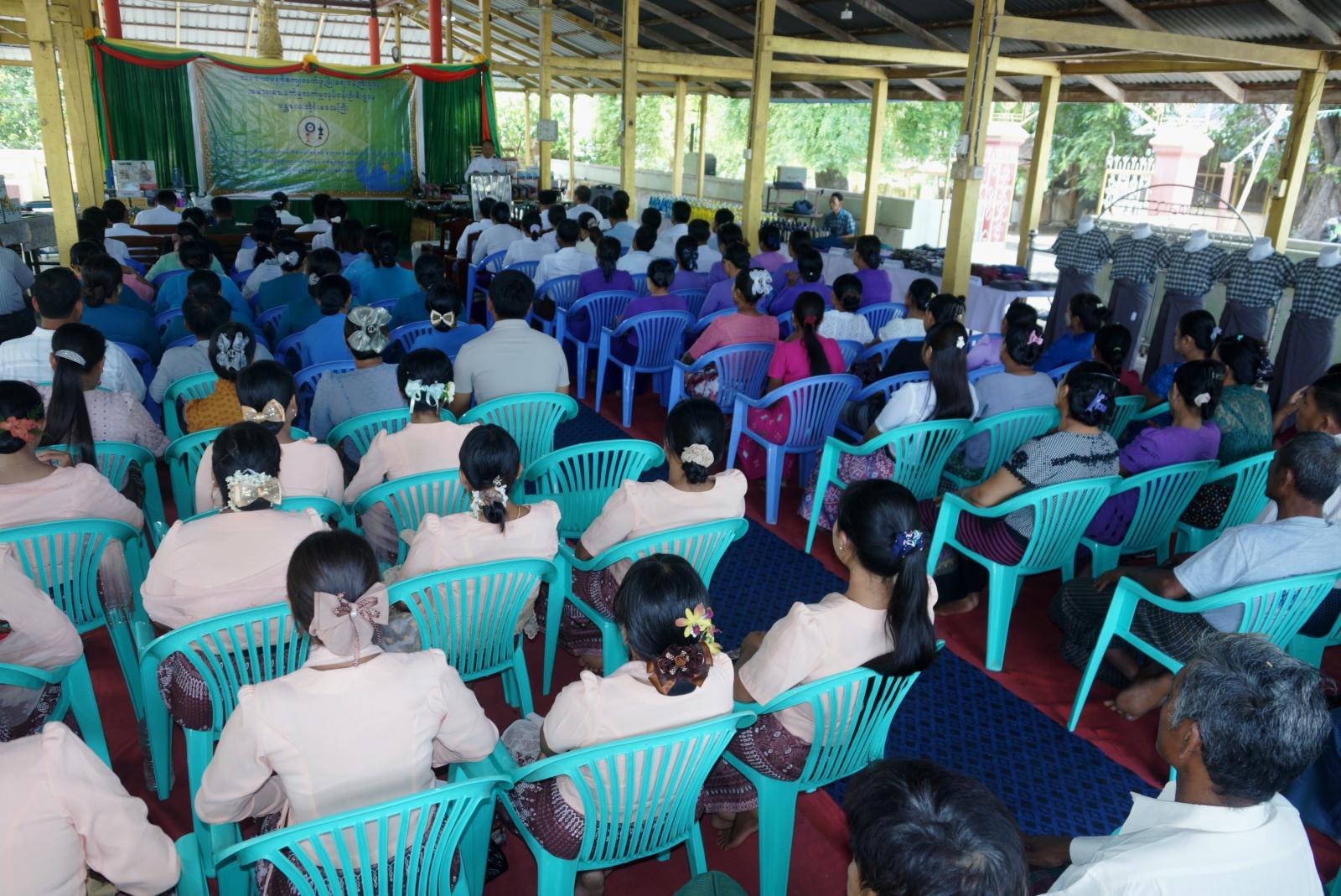 ထို့နောက် တိုင်းဒေသကြီး လမ်းပန်းဆက်သွယ်ရေးဝန်ကြီး ဦးအောင်ဇော်ဦး၊ ဒုတိယညွှန်ကြားရေးမှူးချုပ် (နည်းပညာ) ဒေါ်ငြိမ်းအေးနှင့် တာဝန်ရှိသူများက လူသုံးကုန်ထုတ်လုပ်မှု နည်းပညာသင်တန်းနှင့် စက်ချုပ်နည်းပညာသင်တန်းများမှ လုပ်ငန်းထူထောင်မည့်သူများအား လုပ်ငန်းသုံးပစ္စည်းများနှင့် သင်တန်းဆင်းလက်မှတ်များကို ပေးအပ်ချီးမြှင့်ခဲ့ပြီး သင်တန်းသူတစ်ဦးမှ ကျေးဇူးတင်စကား ပြန်လည်ပြောကြားခဲ့သည်။