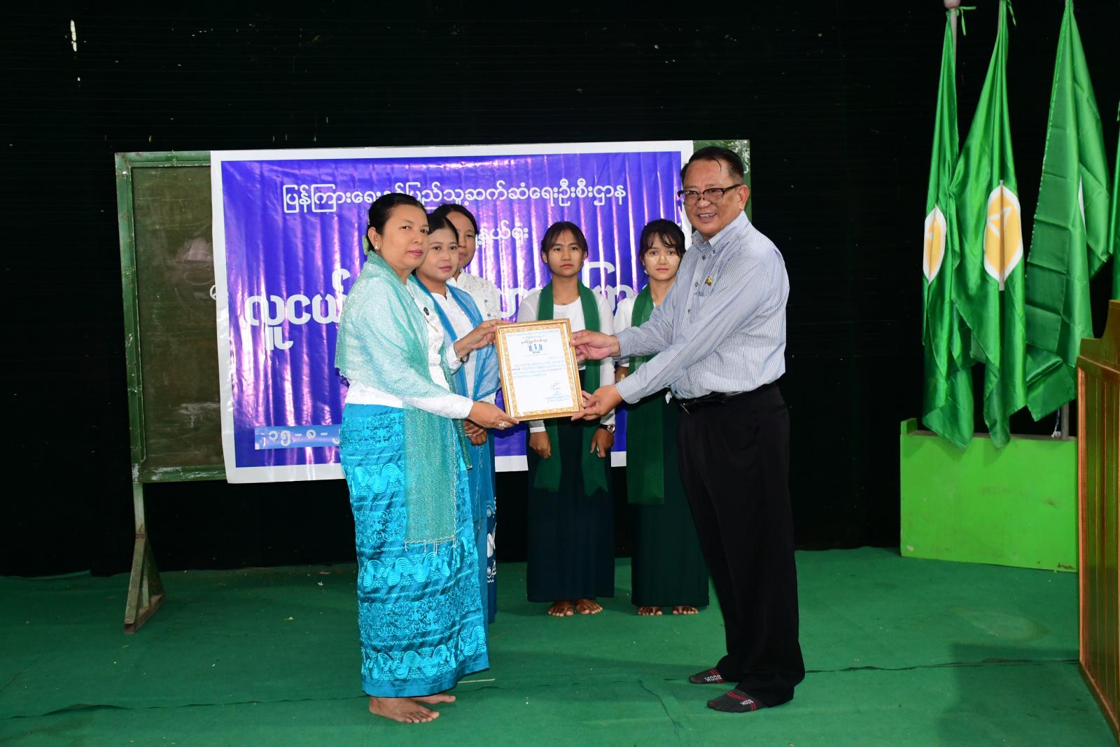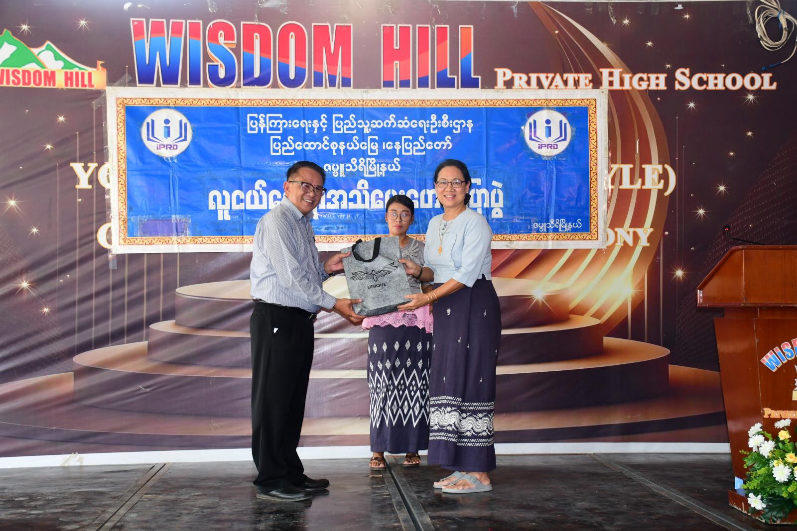 ထို့နောက် Wisdom Hill ကိုယ်ပိုင်အထက်တန်းကျောင်းမှ ကျောင်းအုပ်ဆရာမကြီးက ကျေးဇူးတင်စကားပြောကြားပြီး စာရေးဆရာ ကိုရွှေအောင်သင်းအား အမှတ်တရဂုဏ်ပြုလက်ဆောင် ပေးအပ်ကြသည်။ အခမ်းအနားအပြီးတွင် ဇမ္ဗူသီရိမြို့နယ် ပြန်ကြားရေးနှင့်ပြည်သူ့ဆက်ဆံရေးဦးစီးဌာနမှ ခင်းကျင်းပြသထားသည့် နံရံကပ်စာစောင်များနှင့် စာအုပ်၊ စာစောင်များကို ကျောင်းသား၊ ကျောင်းသူများက စိတ်ပါဝင်စားစွာ လေ့လာကြည့်ရှုခဲ့ကြကြောင်း သိရသည်။