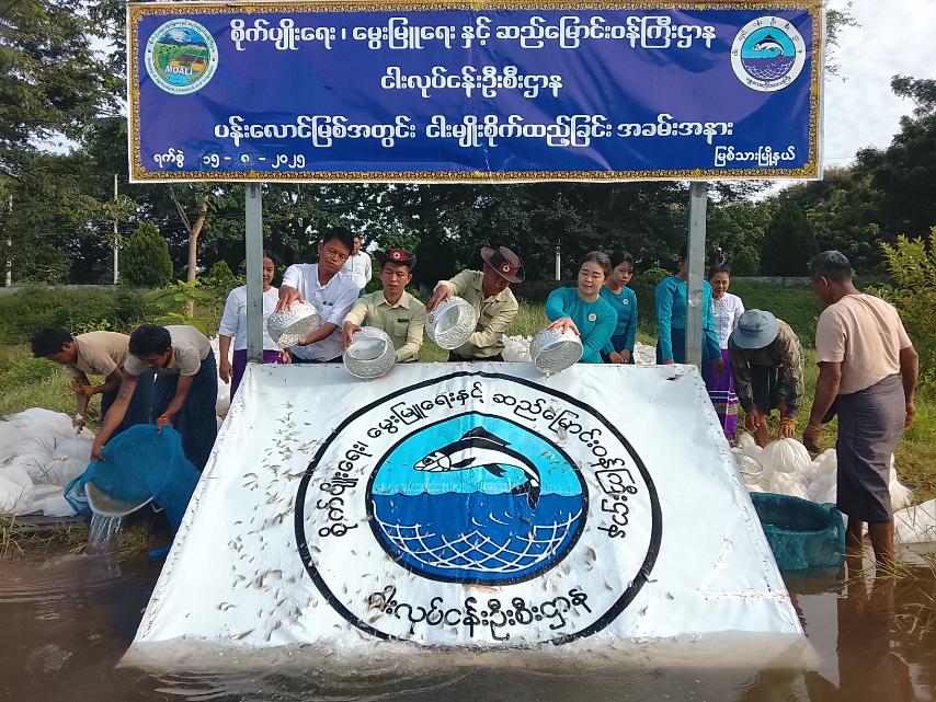 မန္တလေးတိုင်းဒေသကြီး၊ ကျောက်ဆည်ခရိုင်၊ မြစ်သားမြို့နယ် နွားကူးကြီးကျေးရွာအုပ်စု ရေအေးဆိပ်ကျေးရွာအနီးရှိ ပန်းလောင်မြစ်အတွင်းသို့ ငါးသားပေါက်ကောင်ရေ(၃)သိန်း ငါးမျိုးစိုက်ထည့်ပေးခြင်းကို ယမန်နေ့နံနက်(၇)နာရီခွဲအချိန်က မန္တလေးတိုင်းဒေသကြီး ငါးလုပ်ငန်းဦးစီးဌာန၏ ကြီးကြပ်မှုဖြင့် ငါးမျိုးစိုက်ထည့်ပေးခဲ့ကြောင်း သိရသည်။
