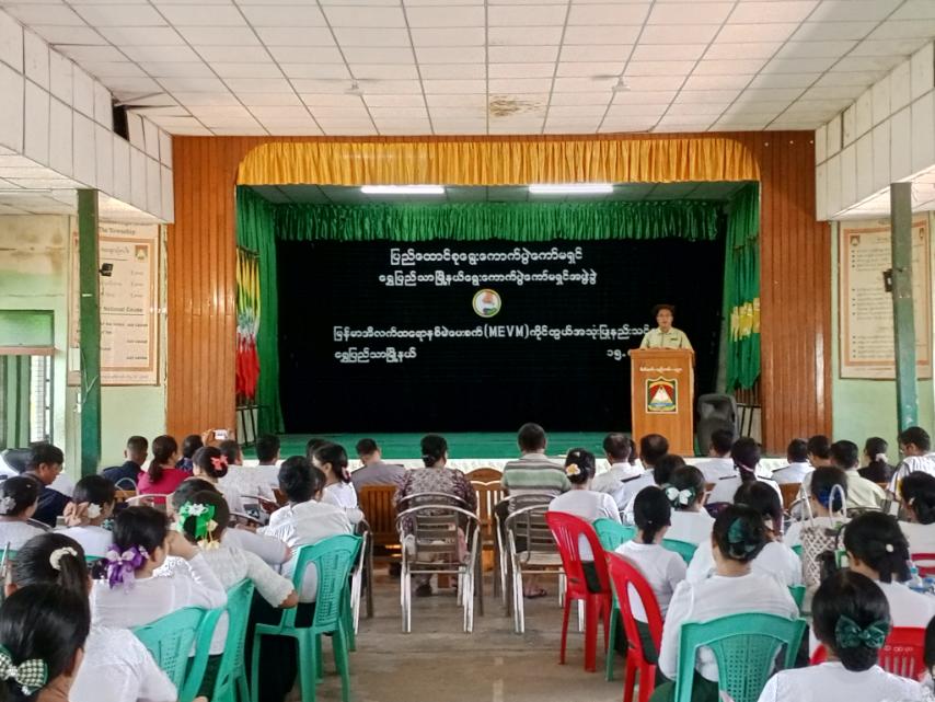 ရန်ကုန်တိုင်းဒေသကြီး၊ ရွှေပြည်သာမြို့နယ်၊ အမှတ်(၁) အခြေခံပညာအထက်တန်းကျောင်း၊ ရွှေပြည်ရတနာခန်းမတွင် မြန်မာအီလက်ထရောနစ်မဲပေးစက် (MEVM) ကိုင်တွယ်အသုံးပြုနည်း သင်တန်းဆင်းပွဲ အခမ်းအနားကို ယမန်နေ့မွန်းလွဲ (၃)နာရီက ကျင်းပပြုလုပ်သည်။