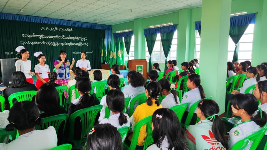 ထိုသို့ ဆောင်ရွက်ရာတွင် ကျန်းမာရေးဌာနမှ ဆရာ၊ဆရာမများက “လူငယ်များဗလငါးတန်ဖွံ့ဖြိုးဖို့ကျောင်းကျန်းမာရေးမြှင့်တင်စို့” ဆောင်ပုဒ်ဖြင့် ကျောင်းသား၊ ကျောင်းသူများအား သွေးလွန်တုပ်ကွေးရောဂါဆိုင်ရာ သိမှတ်ဖွယ်ရာများ၊ ဝမ်းပျက်ဝမ်းလျှောရောဂါဆိုင်ရာ သိမှတ်ဖွယ်ရာများ၊ ဆောင်ရန်ရှောင်ရန်များနှင့် သန့်လေးသန့်နှင့် တစ်ကိုယ်ရည်သန့်ရှင်း သပ်ရပ်စွာနေထိုင်ခြင်းအစရှိသည်တို့ကို အသိပညာပေးပြောကြားခဲ့၍ သံဓာတ်အားတိုးဆေးနှင့် သန်ချဆေးများ တိုက်ကျွေးခဲ့သည်။