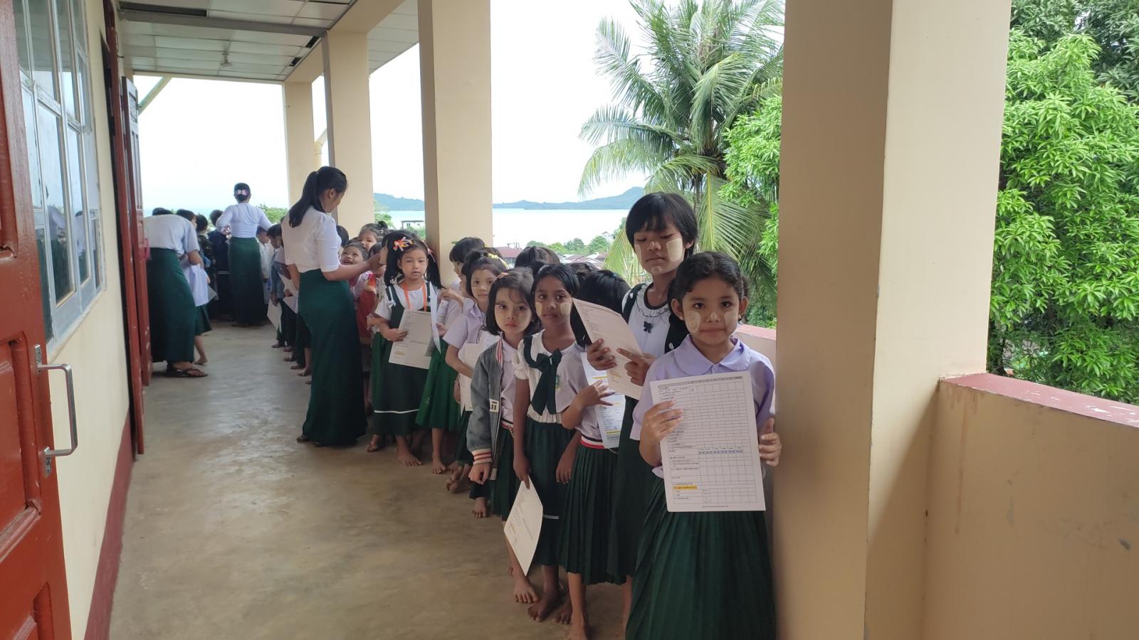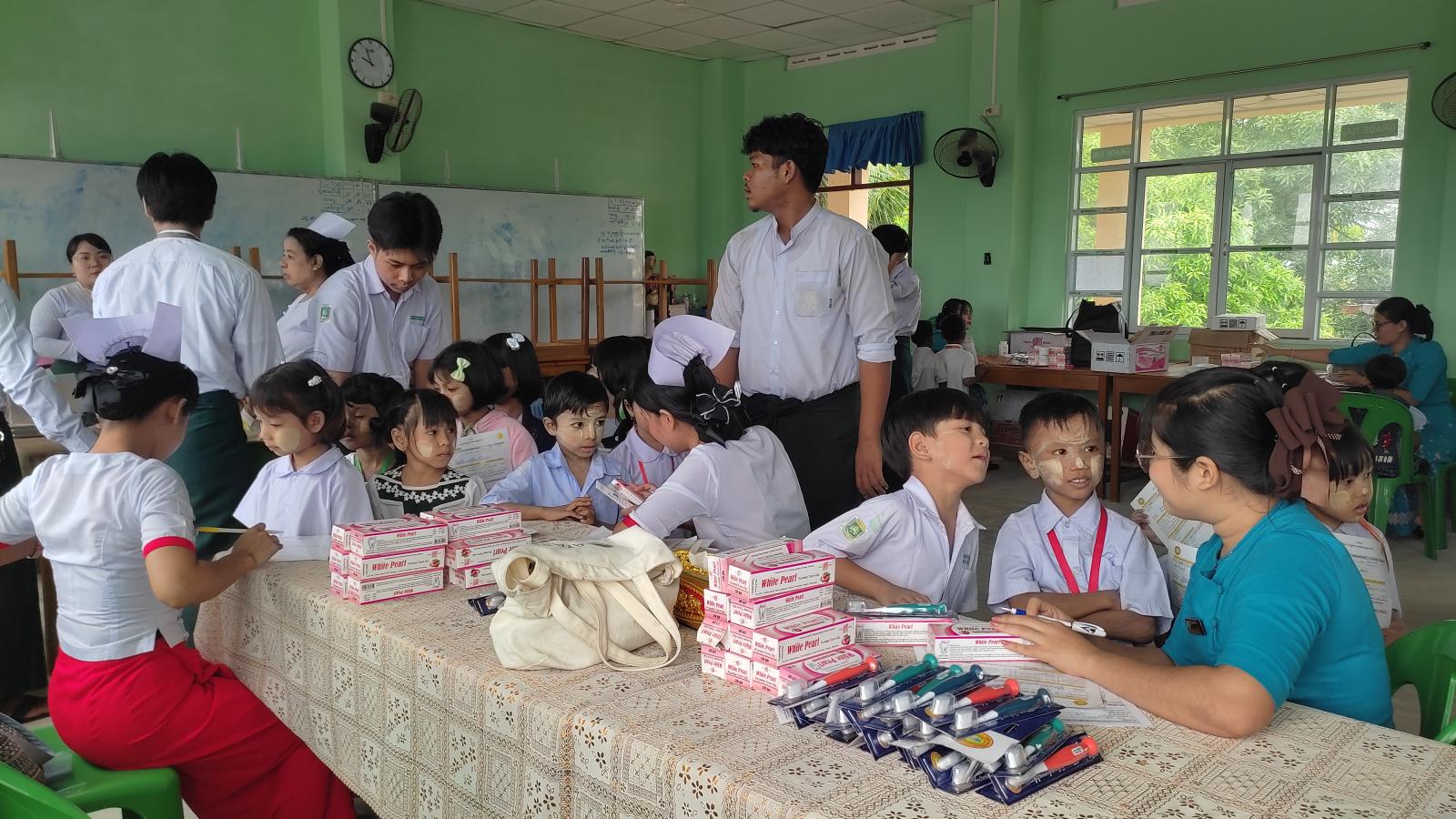 ထို့နောက် KGတန်း မှ (Grade-5)တန်း ကျောင်းသား၊ ကျောင်းသူများ၏ တစ်ကိုယ်ရည်သန့်ရှင်းမှု ရှိ/မရှိ ကြည့်ရှုစစ်ဆေးခြင်း၊ သွားပိုးစားခြင်း၊ သွားနှင့်ခံတွင်းကျန်းမာရေး၊ မျက်လုံး၊ နား၊ နှာခေါင်း၊ လည်ချောင်း၊ လည်ပင်းကျန်းမာရေးများ၊ အခြားရောဂါလက္ခဏာများအား ကျန်းမာရေးစစ်ဆေး မှုများပြုလုပ်ခြင်း၊ သွေးလွန်တုပ်ကွေးရောဂါလက္ခဏာများ၊ ဝမ်းပျက်ဝမ်းလျှောရောဂါ လက္ခဏာများနှင့် အခြားရောဂါလက္ခဏာများ ရှိ/မရှိတို့ကို ကြည့်ရှုစစ်ဆေးခဲ့ကြပြီး KG ကျောင်းသား၊ ကျောင်းသူလေးများအား ကျန်းမာရေးဝန်ကြီးဌာန၊ ပြည်သူ့ကျန်းမာရေးဦးစီးဌာနမှ အခမဲ့ဖြန့်ဝေသော သွားတိုက်တံနှင့် သွားတိုက်ဆေးများ ပေးအပ်ခဲ့ကြောင်း သိရသည်။
