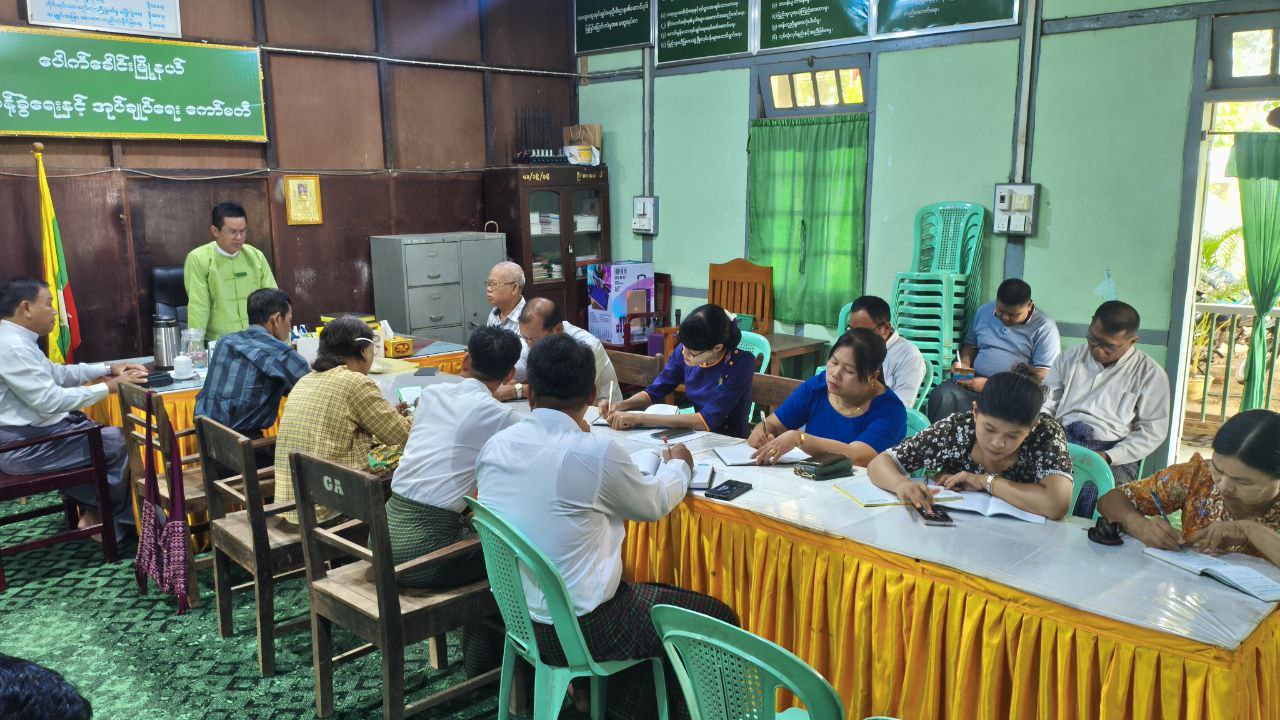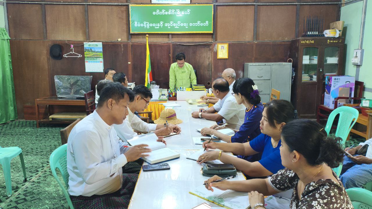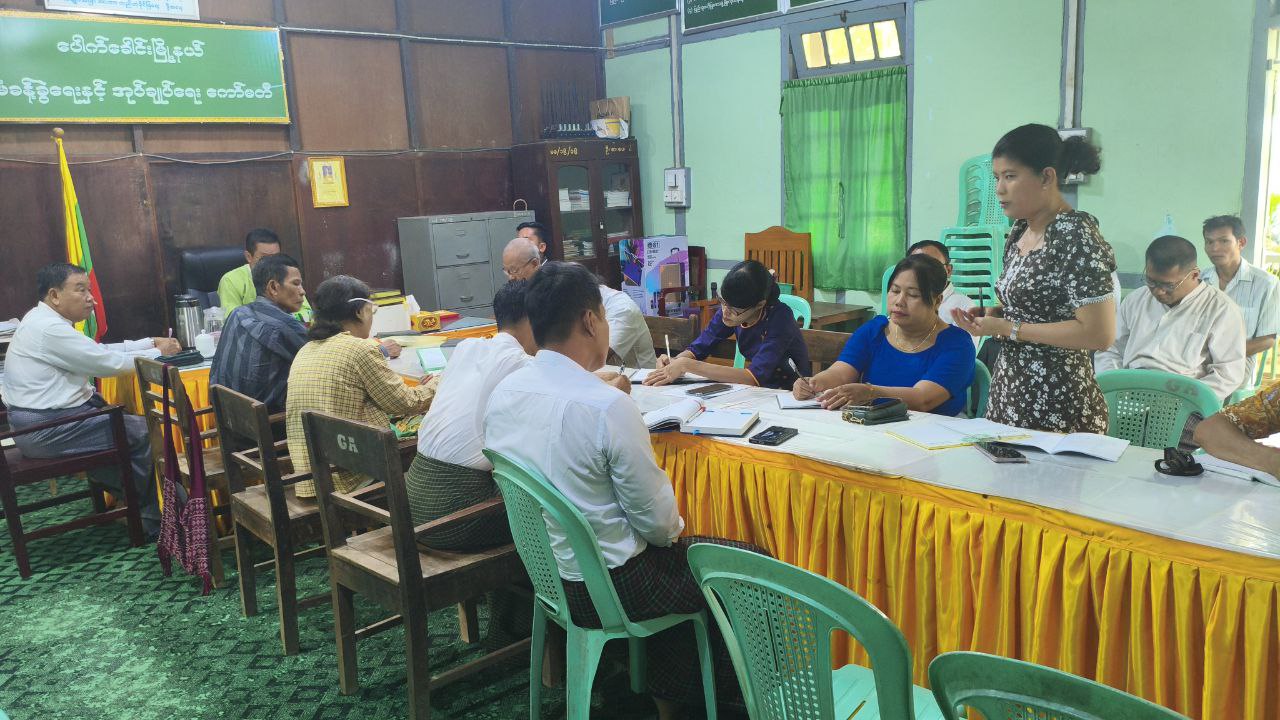 အစည်းအဝေးတွင် ရှေးဦးစွာ မြို့နယ်စီမံခန့်ခွဲရေးနှင့်အုပ်ချုပ်ရေးကော်မတီဥက္ကဋ္ဌ ဦးအောင်နိုင်သူဦးက အဖွင့်အမှာစကားပြောကြားခဲ့ပြီး မြန်မာအီလက်ထရောနစ်မဲပေးစက် (MEVE)ကို အသုံးပြု၍ လက်တွေ့စမ်းသပ်မဲပေးခြင်းဆိုင်ရာ သရုပ်ပြပွဲကျင်းပနိုင်ရေး စီစဥ်ဆောင်ရွက်ထားရှိမှု၊ စက်ပစ္စည်းကိရိယာများအား စနစ်တကျ ပြင်ဆင်ထားရှိမှုနှင့် မြန်မာအီလက်ထရောနစ်မဲပေးစက် (MEVM)ကို စိတ်ချလုံခြုံသည့်နေရာ၌ဂရုတစိုက်ထားရှိမှု အစရှိသည်တို့ကို ဦးဆောင်ဆွေးနွေးပြောကြားရာ မြို့နယ်ရွေးကောက်ပွဲကော်မရှင်အဖွဲ့ခွဲရုံးမှ မြို့နယ်ရွေးကောက်ပွဲအရာရှိ ဒေါ်ခင်ချောမြင့်က လိုအပ်သည်များကိုဖြည့်စွက်ဆွေးနွေး ပြောကြားပေးခဲ့ကြောင်း သိရသည်။