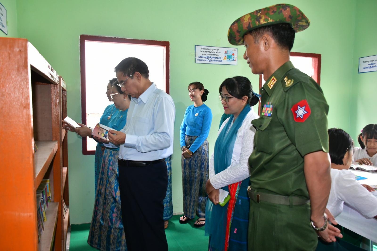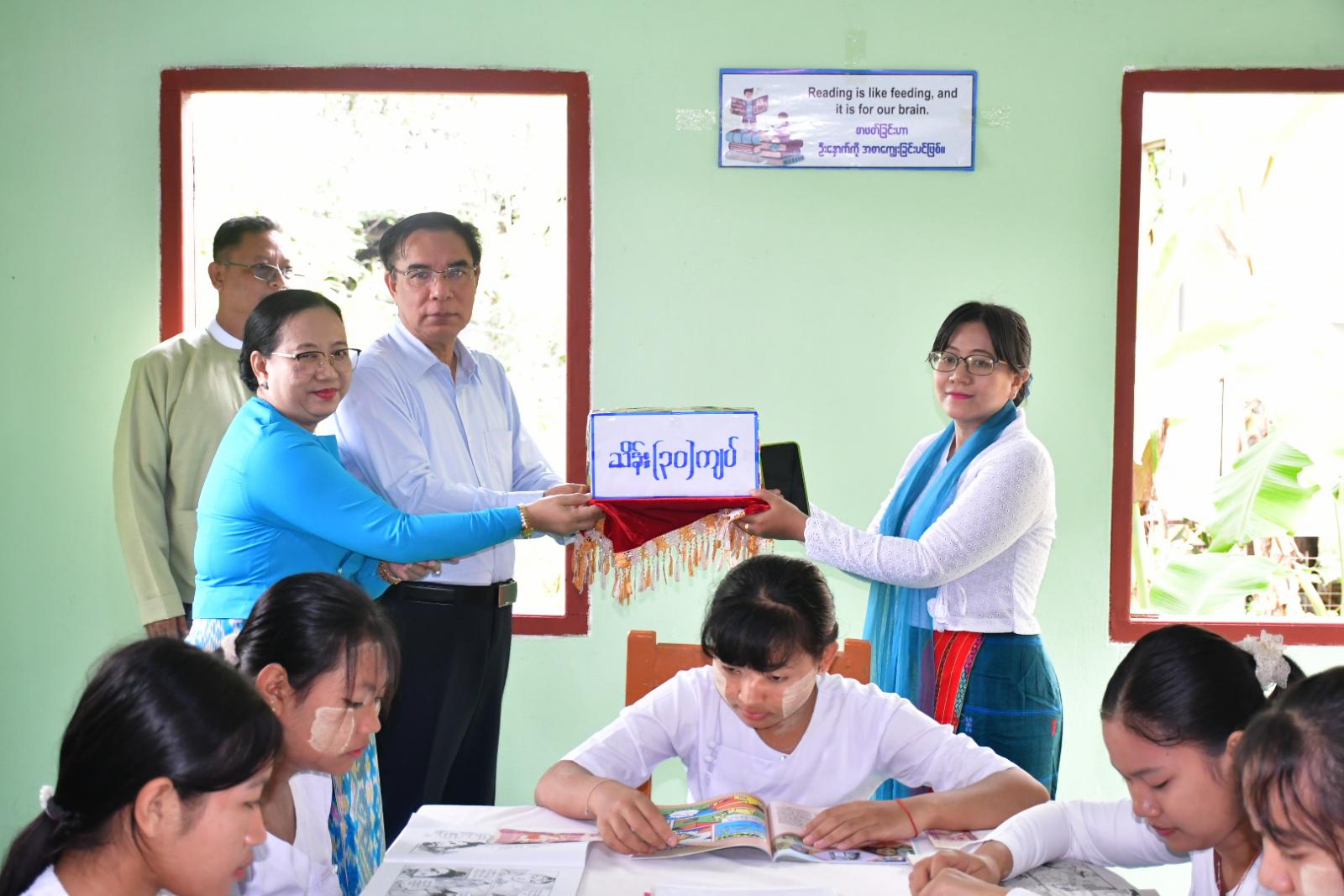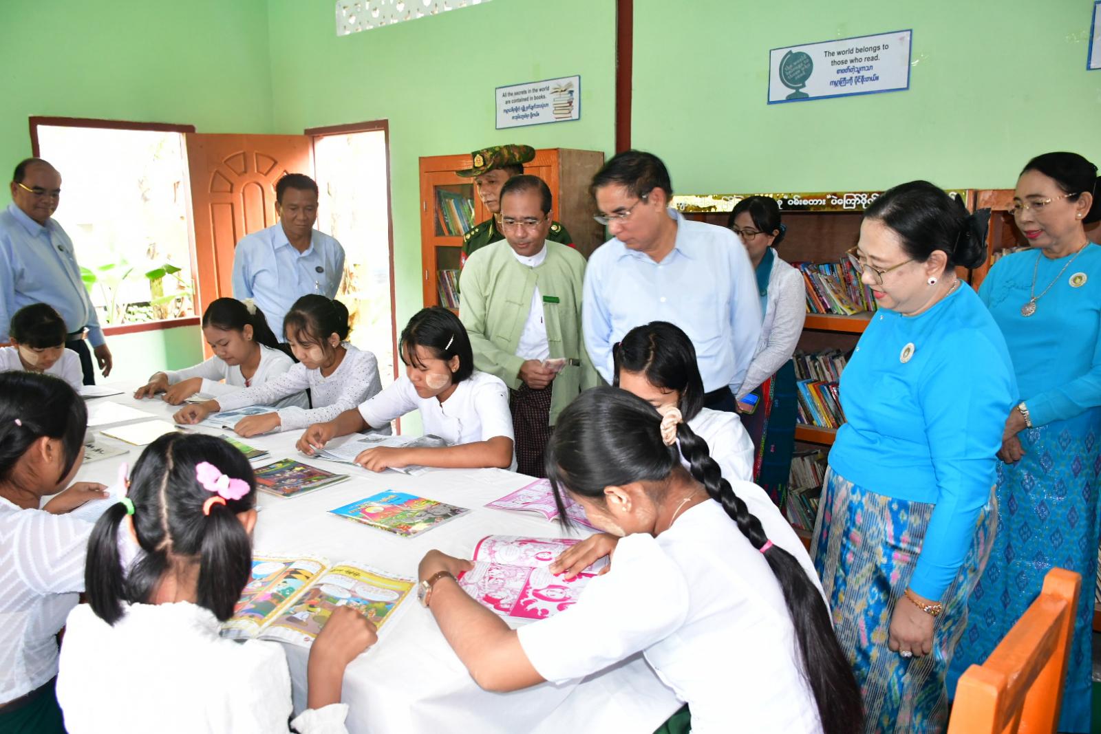 ထို့နောက် တိုင်းဒေသကြီးဝန်ကြီးချုပ်နှင့် ဇနီး၊ တိုင်းဒေသကြီးအစိုးရအဖွဲ့ဝင် ဝန်ကြီးများနှင့် ၎င်းတို့၏ဇနီးများ၊ တာဝန်ရှိသူများက စာကြည့်တိုက်အတွင်း လှည့်လည်ကြည့်ရှုခဲ့ကြပြီး စာကြည့်တိုက်အတွက် သုတ/ရသစာအုပ်စာစောင်များနှင့် အလှူငွေကျပ်သိန်း(၃၀)ပေးအပ်ခဲ့ကာ မျိုးဆက်သစ်လူငယ်များ၊ ကျောင်းသား/ကျောင်းသူများ စာပေဖတ်ရှုခြင်းဖြင့် အသိပညာဗဟုသုတတိုးပွား၍ လိမ္မာယဉ်ကျေးသည့် လူတော်လူကောင်းများဖြစ်စေရန် ရည်ရွယ်ဖွင့်လှစ်ပေးခြင်းဖြစ်၍ လူငယ်များ စာကြည့်တိုက်သို့လာရောက်စေရေး အလေးထားစည်းရုံးဆောင်ရွက်ရန်နှင့် စာကြည့်တိုက်အား ပိတ်ရက်မရှိဖွင့်လှစ်ပေးထားရန် စာကြည့်တိုက်ကော်မတီဝင်များအား လမ်းညွှန်မှာကြားခဲ့သည်။