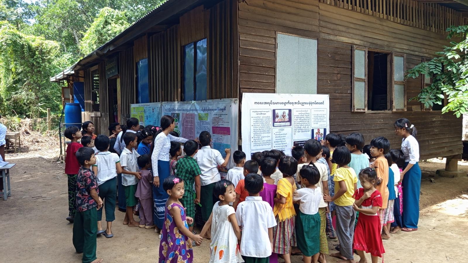 ဆက်လက်၍ ပြန်ကြားရေးနှင့်ပြည်သူ့ဆက်ဆံရေးဦးစီးဌာနဝန်ထမ်းများမှ ကျောင်းသား၊ ကျောင်းသူလေးများကို ရုပ်ပုံပါစာအုပ်ဖြင့် ပုံပြင်ပြောခြင်း၊ စက္ကူပြဇာတ်ဖြင့် ပုံပြင်ပြောပြခြင်း၊ စာဖတ်ရှိန်မြှင့်တင်ရေးအတွက် ကျောင်းသား၊ ကျောင်းသူလေးများ အသိပညာဗဟုသုတရရှိစေမည့် စာအုပ်စာစောင်များကို ဖတ်ရှုစေခြင်းနှင့် လူကုန်ကူးမှုအသိပညာပေးနံရံကပ်စာစောင်၊ ကလေးအလုပ်သမားပပျောက်ရေး အသိပညာပေးနံရံကပ်စာစောင်များ ပြသခဲ့ရာ ကျောင်းသား၊ ကျောင်းသူလေးများက စိတ်ပါဝင်စားစွာ ကြည့်ရှုလေ့လာခဲ့ကြကြောင်း သိရသည်။