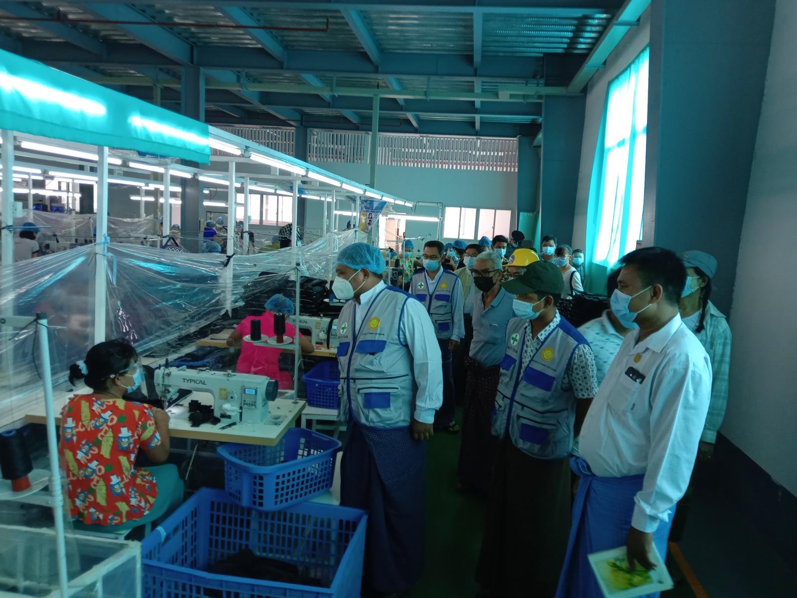 ထိုနောက် တာဝန်ရှိသူများက စက်ရုံအတွင်း၊အပြင်၌ ကိုဗစ်-၁၉ရောဂါကာကွယ်ရေး ဆိုင်ရာများ စီစဥ်ဆောင်ရွက်ထားမှုများကြည့်ရှု့ စစ်ဆေးကာ စက်ရုံတာဝန်ခံနှင့်တာဝန်ရှိသူများနှင့် တွေ့ဆုံပြီးကိုဗစ်-၁၉ရောဂါဆိုင်ရာများ စက်ရုံအလုပ်သမားများ ကျယ်ကျယ်ပြန့်ပြန့်သိရှိရေး ဆက်လက်ဆောင်ရွက်ပေးကြရန် အသိပညာပေးခြင်း၊ စက်ရုံအလုပ်ရုံအလုပ်ဌာနများသည်လုပ်ငန်းသဘောသဘ ဝအရ ကူးစက်ပျံနှံမှုအလားအလာ ပိုမိုများပြားနိုင်ပြီးအလုပ်သမားများအကြားတွင်လည်ကူးစက် ပျံနှံမှုများတွေ့ရှိလာနိုင်သောကြောင့် စက်ရုံအလုပ်ရုံ အလုပ်ဌာနအျားအနေဖြင့် အထူးသတိပြု၍တိကျစွာလိုက်နာ ဆောင်ရွက်ကြရန်ပြောကြား ခဲ့ကြောင်း သိရှိရသည်။