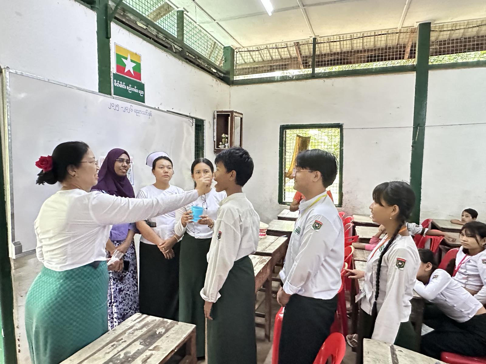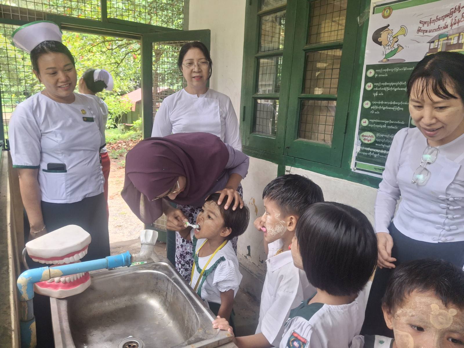 အဆိုပါ ကျောင်းကျန်းမာရေးစစ်ဆေးပေးခြင်းကို လမ်းမတော်မြို့နယ်ပြည်သူ့ကျန်းမာရေးဦးစီးဌာနမှ ဦးစီးအရာရှိ (သွားကျန်းမာ) ဒေါက်တာမေသဥ္ဇာနွယ်နှင့် ကျန်းမာရေးဝန်ထမ်းများက ကျောင်းသားကျောင်းသူများကို စနစ်မှန်သွားတိုက်နည်းအား သရုပ်ဖော်သင်ကြားခြင်း၊ သန်ချဆေးတိုက်ကျွေးခြင်း၊ အာဟာရအုပ်စု(၅)စုအား ရှင်းလင်းပြောပြခြင်း၊ ကျောင်းကျန်းမာရေးစစ်ဆေးမှု မှတ်တမ်းကတ်များဖြည့်စွက်ခြင်း၊ ကျောင်းပတ်ဝန်းကျင်သန့်ရှင်းစေခြင်း၊ တစ်ကိုယ်ရည်သန့်ရှင်းရေး၊ သွေးလွန်တုပ်ကွေးရောဂါ ကြိုတင်ကာကွယ်ရေး စသည့် ကျန်းမာရေးအသိပညာပေးဟောပြောခြင်းတို့ကို ဆောင်ရွက်ပေးခဲ့ကြကြောင်း သိရသည်။