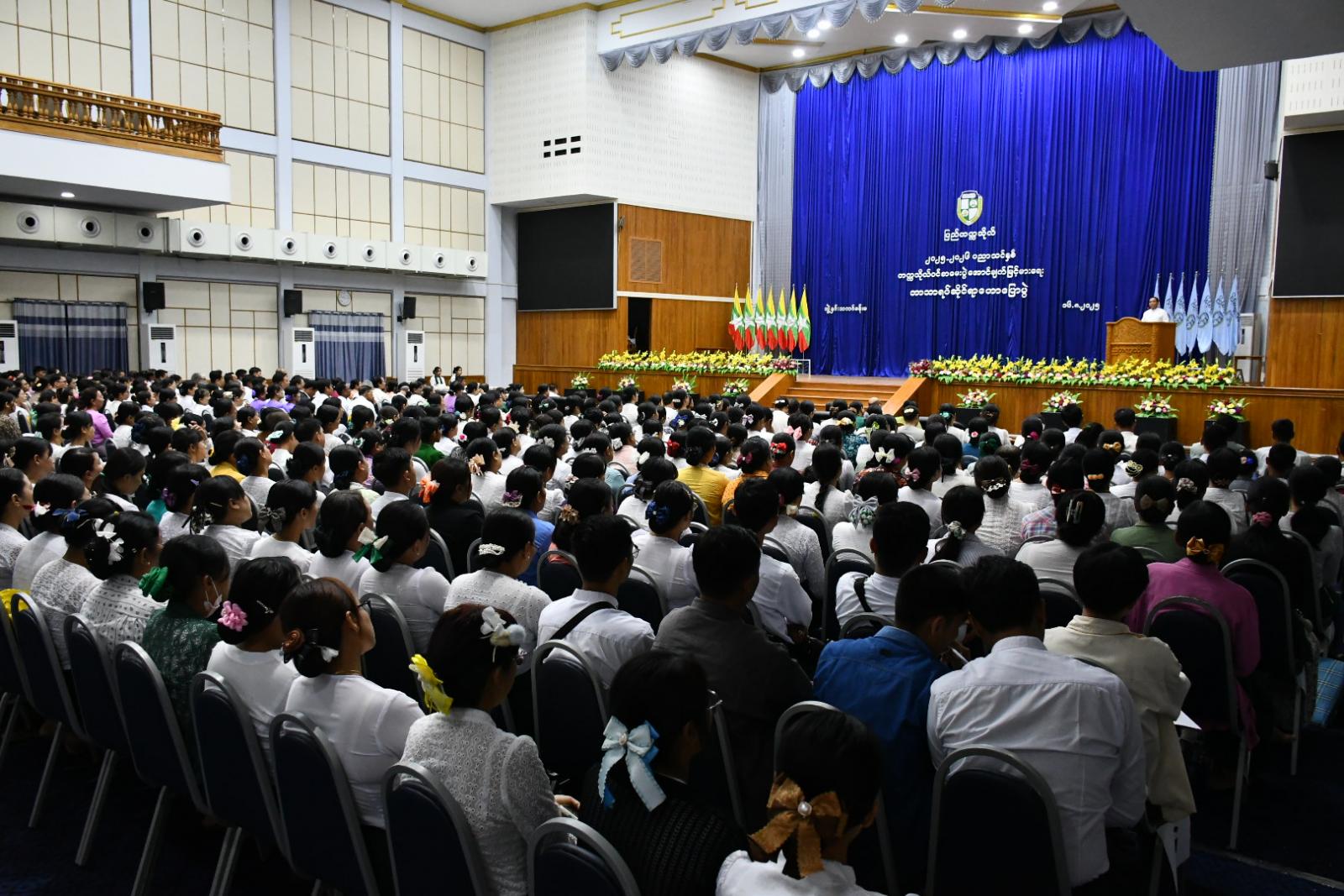 ပဲခူးတိုင်းဒေသကြီး၊ ပြည်တက္ကသိုလ်၌ ဩဂုတ်လ ၁၆ ရက်နေ့က ပြည်မြို့နယ်၏ ၂၀၂၅-၂၀၂၆ ပညာသင်နှစ်၊ တက္ကသိုလ်ဝင်တန်း(Grade-12)အောင်ချက်မြင့်မားရေးဟောပြောပွဲနှင့် အလုပ်ရုံဆွေးနွေးပွဲဆောင်ရွက်ရာ ပြည်တက္ကသိုလ်မှပါမောက္ခချုပ်နှင့်ဒုတိယပါမောက္ခချုပ်များ၊ သင်ကြား/စီမံအရာရှိများနှင့်ပါမောက္ခ (ဌာနမှူး)များ၊ အခြေခံပညာဦးစီးဌာန၊ ပဲခူးတိုင်းဒေသကြီးပညာရေးမှူးရုံးခွဲ(ပြည်)ညွှန်ကြားရေးမှူးနှင့် ခရိုင်/မြို့နယ်ပညာရေးမှူးများ၊ ဆရာ/ဆရာမများတက်ရောက်ကြသည်။