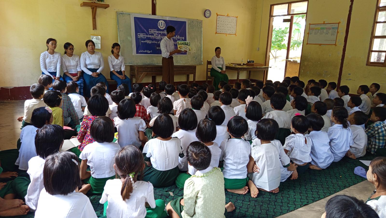 ဆက်လက်၍ ပြန်ကြားရေးနှင့်ပြည်သူ့ဆက်ဆံရေးဦးစီးဌာနဝန်ထမ်းများမှ ကျောင်းသား၊ ကျောင်းသူလေးများကို ရုပ်ပုံပါစာအုပ်ဖြင့်ပုံပြင်ပြောခြင်း၊ စက္ကူပြဇာတ်ဖြင့် ပုံပြင်ပြောပြခြင်း၊ စာဖတ်ရှိန်မြှင့်တင်ရေးအတွက် ကျောင်းသား၊ ကျောင်းသူလေးများအား အသိပညာဗဟုသုတရရှိစေမည့် စာအုပ်စာစောင်များကို ဖတ်ရှုစေခြင်းနှင့် အသိပညာပေးနံရံကပ်စာစောင်များ ပြသခြင်းတို့ ဆောင်ရွက်ခဲ့ကြောင်း သိရသည်။