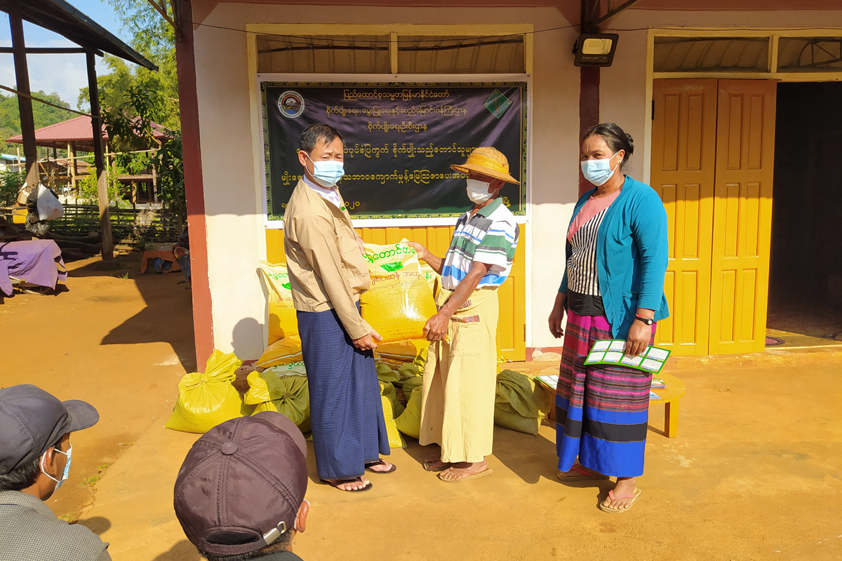 ရှမ်းပြည်နယ်(တောင်ပိုင်း)၊ လွိုင်လင်ခရိုင်၊ ကာလိမြို့၊ ဟိုပန်ကျေးရွာအုပ်စု၊ ဝမ်ဆတ်ကျေးရွာ ဆောင်းသီးနှံပဲ ပုပ်စံပြကွက် စိုက်ပျိုးသည့် တောင်သူများအား ကိုဗစ်-၁၉ ရောဂါကာလအတွင်း ထောက်ပံ့ရေး မျိုးစေ့နှင့် မြေသြဇာထောက်ပံ့ပေးအပ်ပွဲ အခမ်းအနားကို ကာလိမြို့ စိုက်ပျိုးရေးဦးစီး ဌာနမှ ဦးစီးမှူး ဦးစိုင်းငွေလေးနှင့် ဝန်ထမ်းများ၊ အထွေထွေအုပ်ချုပ်ရေးဦးစီးဌာနမှ ကျေးရွာအုပ်စုစာရေး ဦးဝေလင်းထွန်း၊ ကျေးရွာအုပ်ချုပ်ရေးမှူး ဦးဇာကလတို့က ယနေ့ နံနက် (၁၀)နာရီအချိန်ခန့်က ပေးအပ်ပွဲအခမ်းအနား ကျင်းပခဲ့ကြောင်း သိရသည်။