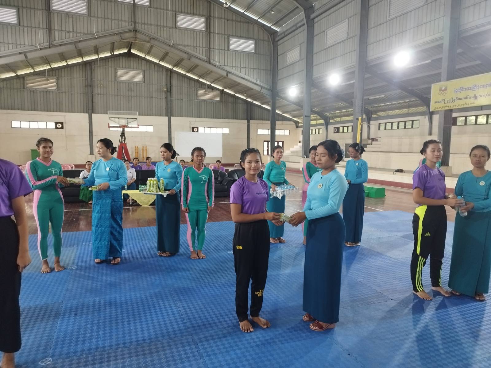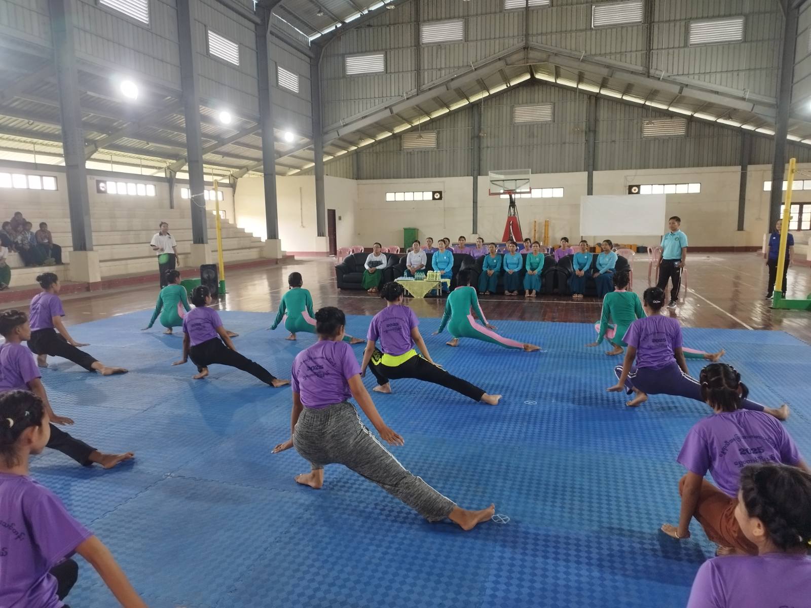 မြို့နယ်ပေါင်းစုံ အမျိုးသမီးကိုယ်ကာယကြံ့ခိုင်မှုလေ့ကျင့်ခန်း(အေရိုးဗစ်)ပြိုင်ပွဲတွင် တစ်ဦးချင်း(တစ်ကိုယ်တော်ပြိုင်ပွဲ)၊ (၃)ယောက်တွဲပြိုင်ပွဲ၊ (၉)ယောက်တွဲ အဖွဲ့လိုက်ပြိုင်ပွဲများ ဝင်ရောက်ယှဥ်ပြိုင်နိုင်ရေးစခန်းသွင်းလေ့ကျင့်နေမှုများကို ဌာနဆိုင်ရာအကြီးအကဲများ၊ မြို့နယ်အမျိုးသမီးရေးရာအဖွဲ့ဥက္ကဌဒေါ်နန်းမြအေးနှင့်အဖွဲ့ဝင်များ၊ မိခင်နှင့်ကလေးစောင့်ရှောက်ရေးအသင်းအဖွဲ့များက ကြည့်ရှုအားပေးခဲ့ကြပြီး အချိုရည်နှင့်ရေသန့်ဘူးများပေးအပ်ခဲ့သည်။