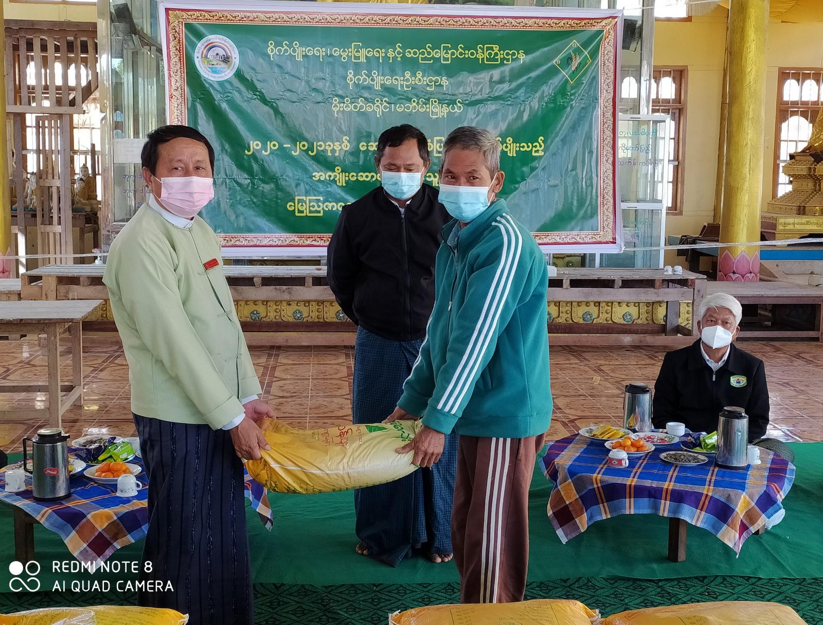 ထို့နောက် ဆောင်းသီးနှံစံပြကွက်စိုက်ပျိုးသည့် အကျိုးတော်ဆောင်တောင်သူ(၂၅)ဦးအား ပြည်နယ်လွှတ်တော် ကိုယ်စားလှယ် ဦးမောင်ညိုနှင့် မြို့နယ်စီမံခန့်ခွဲမှုကော်မတီဥက္ကဋ္ဌ၊ မြို့နယ်အုပ် ချုပ်ရေးမှူး ဦးကျော်နိုင်၊ မြို့နယ် စိုက်ပျိုးရေးဦးစီးဌာန၊ မြို့နယ်ဦးစီးမှူး ဦးဌေးဝင်းနှင့် တာဝန်ရှိသူများက ဂျစ်ပဆန်သဘာဝမြေဩဇာအိတ်များ တစ်ဦးလျှင် (၂)အိတ်နှုန်းဖြင့် အသီးသီးထောက်ပံ့ပေး အပ်ခဲ့ကြကြောင်း သိရသည်။