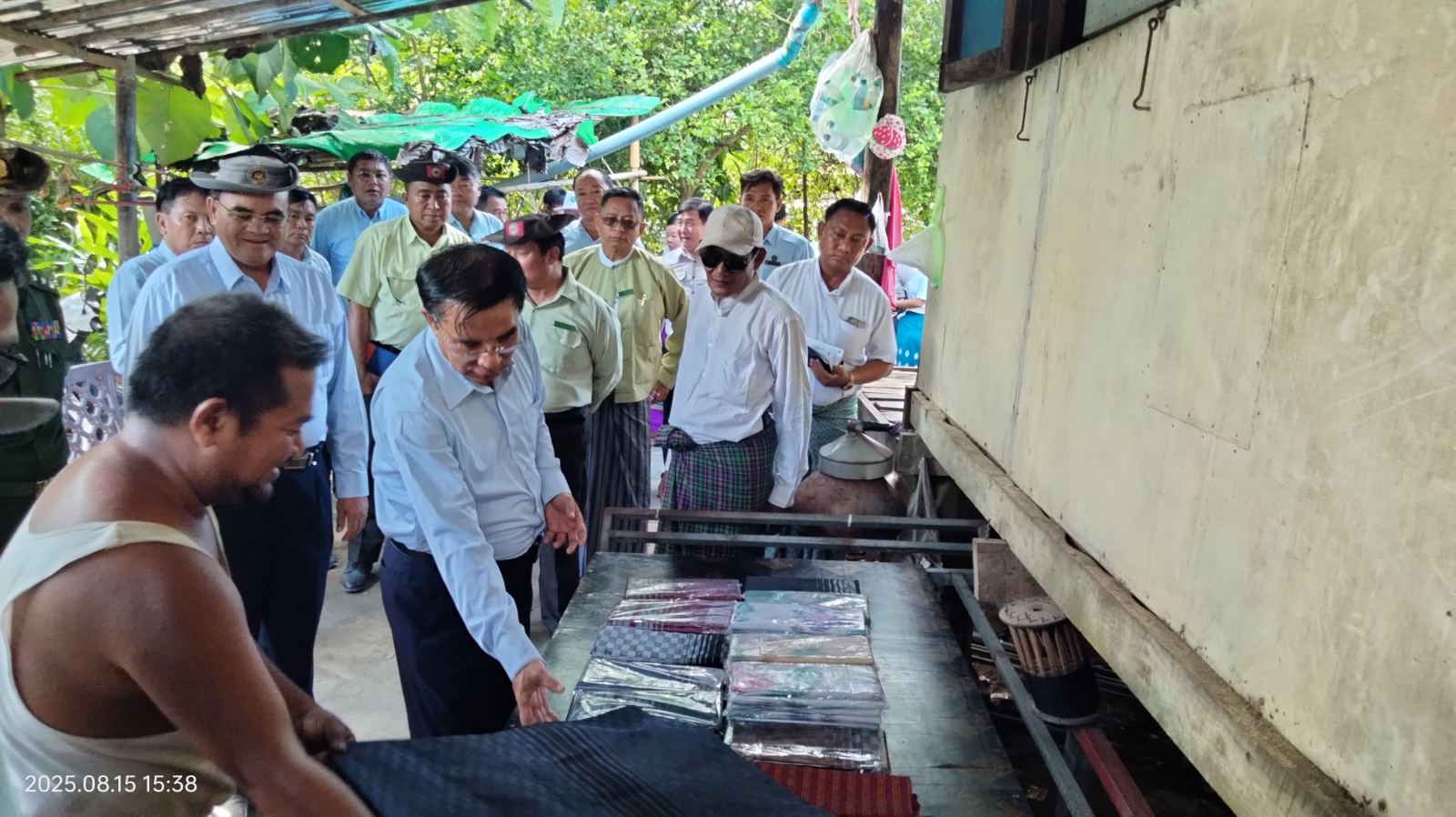 အဆိုပါစစ်ဆေးရာတွင် ရွှေတောင်မြို့နယ်၊ နွားခြံကုန်းကျေးရွာအုပ်စု၊ ကျွန်းတန်းရိုးကျေးရွာ၊ ကွင်းအမှတ် (၄၅၉A) ရှမ်းကုန်းကွင်းအတွင်း တောင်သူဦးဌေးလင်း၏ မြေပဲ(ဆင်းပဒေသာ-ဆင်းပဒေသာ-၁၁) (၀.၅) ဧက စိုက်ပျိုးဖြစ်ထွန်း၍ ရိတ်သိမ်းနေမှုအခြေအနေများ၊ ရွှေတောင်မြို့နယ်၊ မြို့မကျေးရွာအုပ်စုတွင် မြို့မစည်းလုံချည်စက်ရက္ကန်းလုပ်ငန်းလုပ်ကိုင်သူ(၇၈) ဦးရက္ကန်းစင်(၂၃၁) စင်ရှိသည့်အနက် တိုင်းဒေသကြီး နိုင်ငံစီးပွားမြှင့်တင်ရေးရန်ပုံငွေဖြင့် ဆောင်ရွက်လိုသည့် လုပ်ငန်းလုပ်ကိုင်သူ (၃၃) ဦးနှင့် တွေ့ဆုံပြီး အရည်အသွေးမီပစ္စည်းများ ထုတ်လုပ်ဖြန့်ဖြူးရောင်းချနိုင်ရေးအတွက် လိုအပ်သည့် ချေးငွေများ ကူညီပံပိုးပေးနိုင်ရေး သက်ဆိုင်ရာတာဝန်ရှိသူများနှင့် ညှိနှိုင်းဆွေးနွေးမှာကြားခဲ့ပြီး စက်ရက္ကန်းစင်များဖြင့် ပုဆိုး၊ စည်းလုံချည်ဝမ်းဆက် ချည်ထည်အမျိုးမျိုးထုတ်လုပ်မှုများကို ကြည့်ရှုအားပေးခဲ့ပြီး ပြည်ခရိုင်စီမံခန့်ခွဲရေးနှင့် အုပ်ချုပ်ရေးကော်မတီဥက္ကဋ္ဌ ဦးသိန်းအောင်နှင့် အဖွဲ့ဝင်များ၊ ရွှေတောင်မြို့နယ်စီမံခန့်ခွဲရေးနှင့် အုပ်ချုပ်ရေးကော်မတီဥက္ကဋ္ဌ ဦးဟံဝင်းအောင်နှင့် အဖွဲ့ဝင်များက လုပ်ငန်းဆောင်ရွက်မှုအခြေအနေများအား ရှင်းလင်းတင်ပြခဲ့ရာ ပဲခူးတိုင်းဒေသကြီးအစိုးရအဖွဲ့ဝန်ကြီးချုပ်မှ လိုအပ်သည်များကို လမ်းညွှန်မှာကြားခဲ့ကြောင်း သိရသည်။