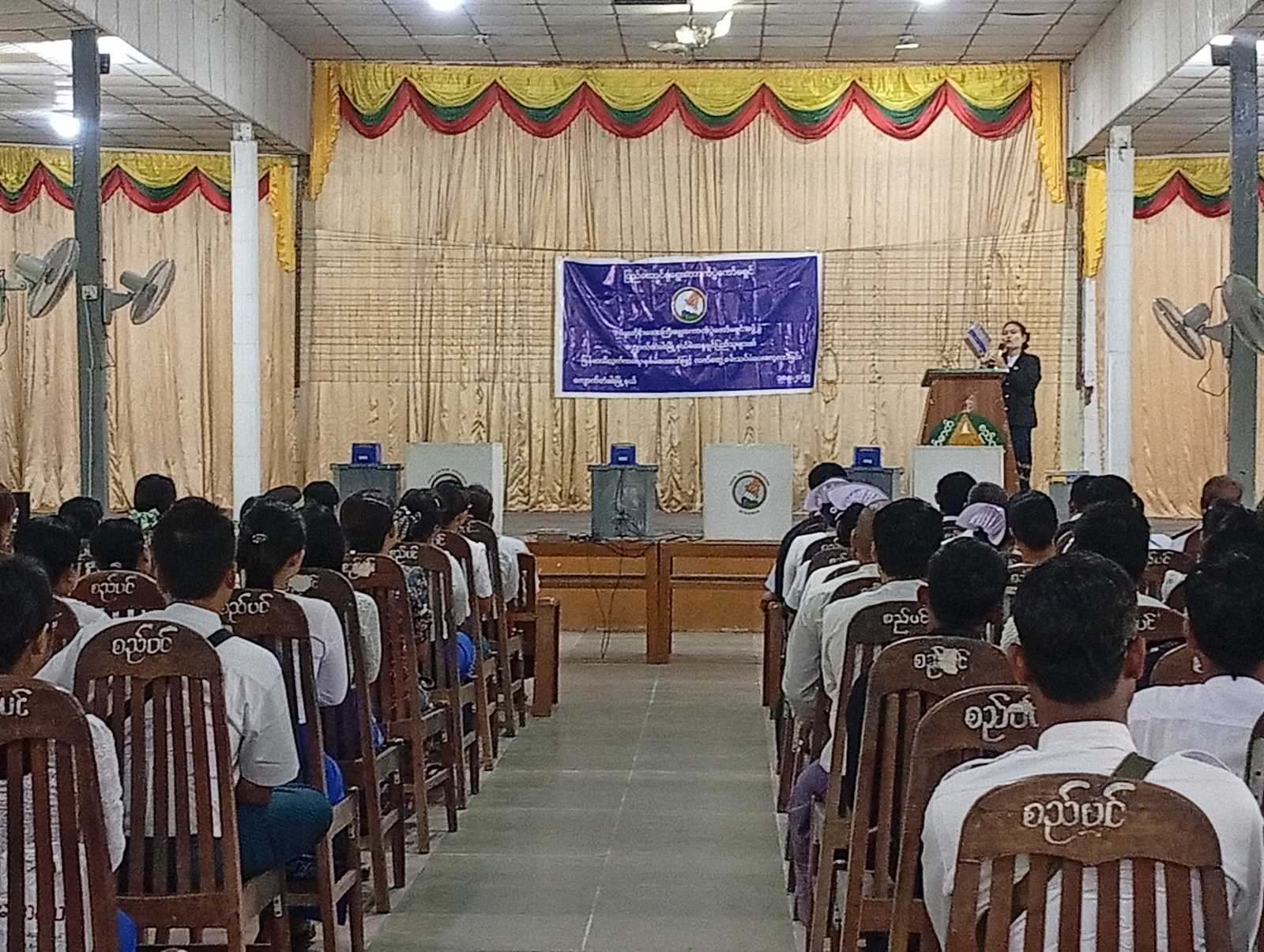ပဲခူးတိုင်းဒေသကြီး၊ ညောင်လေးပင်ခရိုင်၊ ကျောက်တံခါးမြို့နယ်၌ မြန်မာအီလက်ထရောနစ်မဲပေးစက်(MEVM)ဆိုင်ရာအသိပညာပေးခြင်းနှင့် လက်တွေ့စမ်းသပ်မဲပေးခြင်းအခမ်းအနားကို ယနေ့နံနက်(၁၀)နာရီအချိန်က မြို့နယ်စည်ပင်သာယာခန်းမ၌ ကျင်းပပြုလုပ်ခဲ့သည်။