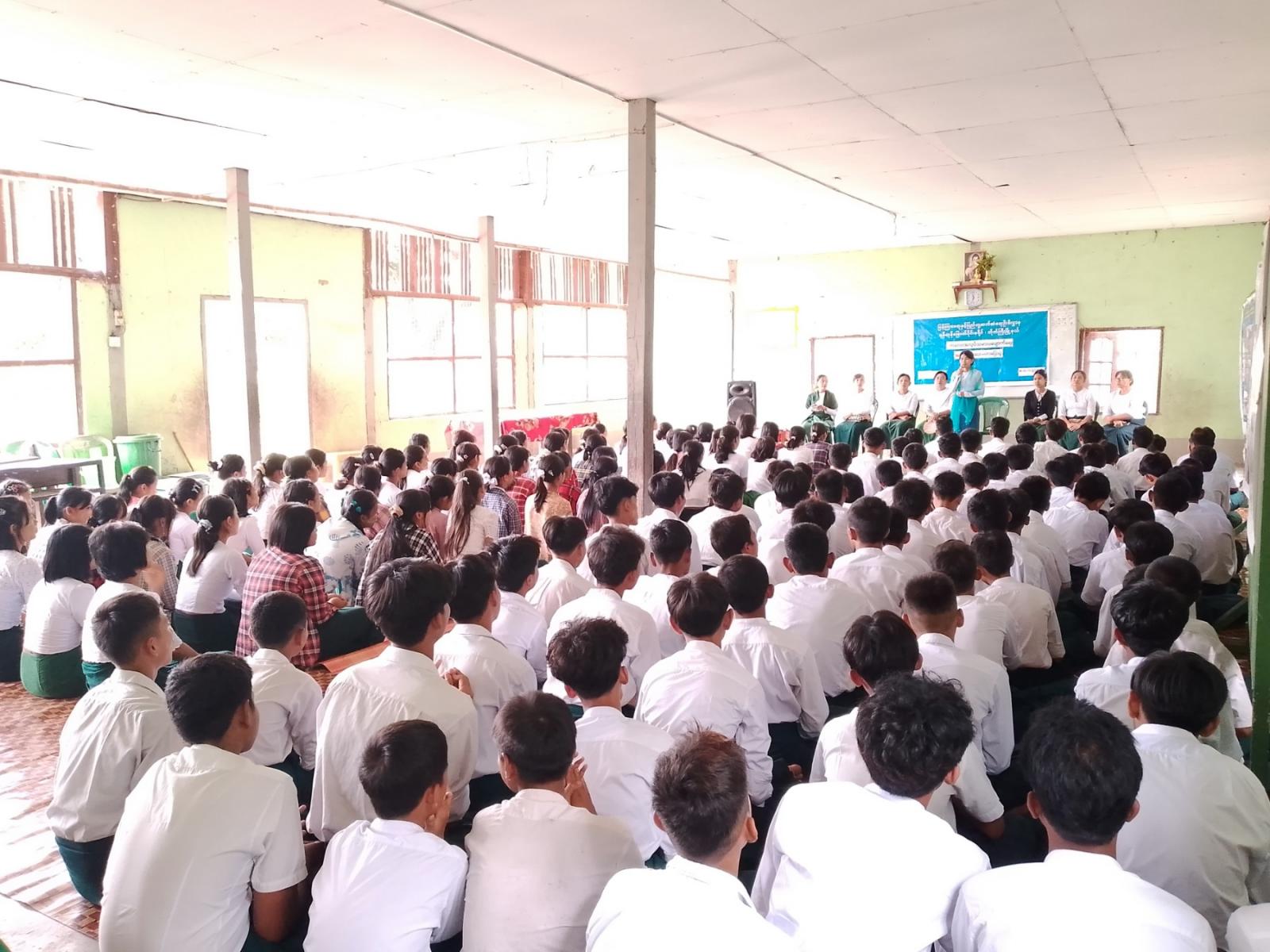 ဦးစွာ အခြေခံပညာအထက်တန်းကျောင်း(ခွဲ)(ဥတို)မှ ကျောင်းအုပ်ဆရာမကြီးက အဖွင့်အမှာစကားပြောကြားပြီး ပြန်ကြားရေးနှင့်ပြည်သူ့ဆက်ဆံရေးဦးစီးဌာန ဦးစီးအရာရှိ ဒေါ်စောဝတ်ရည်က ကလေးအလုပ်သမားများ ပေါ်ပေါက်လာရသည့် အခြေခံအကြောင်းရင်း၊ အဆိုးရွားဆုံးပုံစံဖြင့် ခိုင်းစေခြင်းခံရသော ကလေးအလုပ်သမားများ၊ မြန်မာနိုင်ငံ ကလေးအလုပ်သမားပပျောက်ရေးဥပဒေနှင့် စည်းမျဉ်း၊ စည်းကမ်း၊ ပြဋ္ဌာန်းချက်များကို အသိပညာပေး ဟောပြောခဲ့သည်။