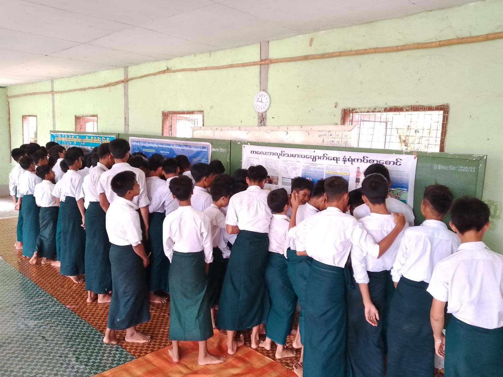 ထို့နောက် ပြန်ကြားရေးနှင့်ပြည်သူ့ဆက်ဆံရေးဦးစီးဌာနက ကလေးအလုပ်သမားပပျောက်ရေး ဝိုင်းဝန်းကူညီဆောင်ရွက်ပေး အသိပညာပေးနံရံကပ်စာစောင်၊ မူးယစ်ဆေးဝါးတိုက်ဖျက်ရေး အသိပညာပေးနံရံကပ်စာစောင်ပြသခြင်းနှင့် သုတ၊ ရသစာအုပ်များကိုပြသခဲ့ရာ ကျောင်းသား၊ ကျောင်းသူများက စိတ်ဝင်စားစွာ ကြည့်ရှုလေ့လာခဲ့ကြောင်း သိရသည်။