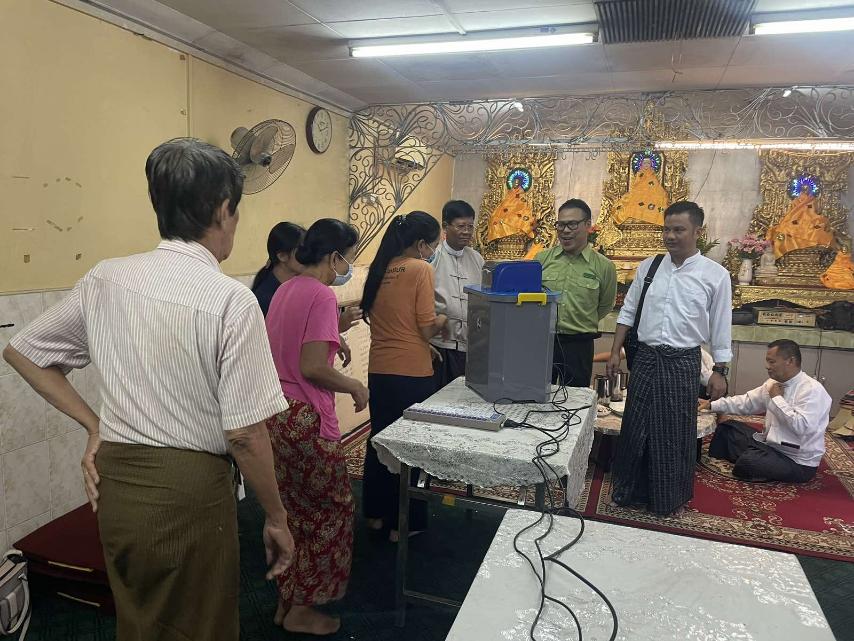 ရန်ကုန်တိုင်းဒေသကြီး၊ ကျောက်တံတားခရိုင်၊ ဒဂုံမြို့နယ်၊ ယောမင်းကြီးရပ်ကွက် ဗိုလ်ရာညွန့်ရှိ၊ ယောမင်းကြီးရပ်ကွက်ဓမ္မာရုံ၌ ဒဂုံမြို့နယ်အတွင်းရှိ မဲဆန္ဒရှင်ပြည်သူများ MEVM မဲပေးစက်ဆိုင်ရာ အသိပညာပေးခြင်းနှင့် လက်တွေ့စမ်းသပ်မဲပေးခြင်း လုပ်ငန်းများကို ယနေ့နံနက် (၉) နာရီအချိန်က စတင်ဆောင်ရွက်ခဲ့ကြောင်း သိရသည်။