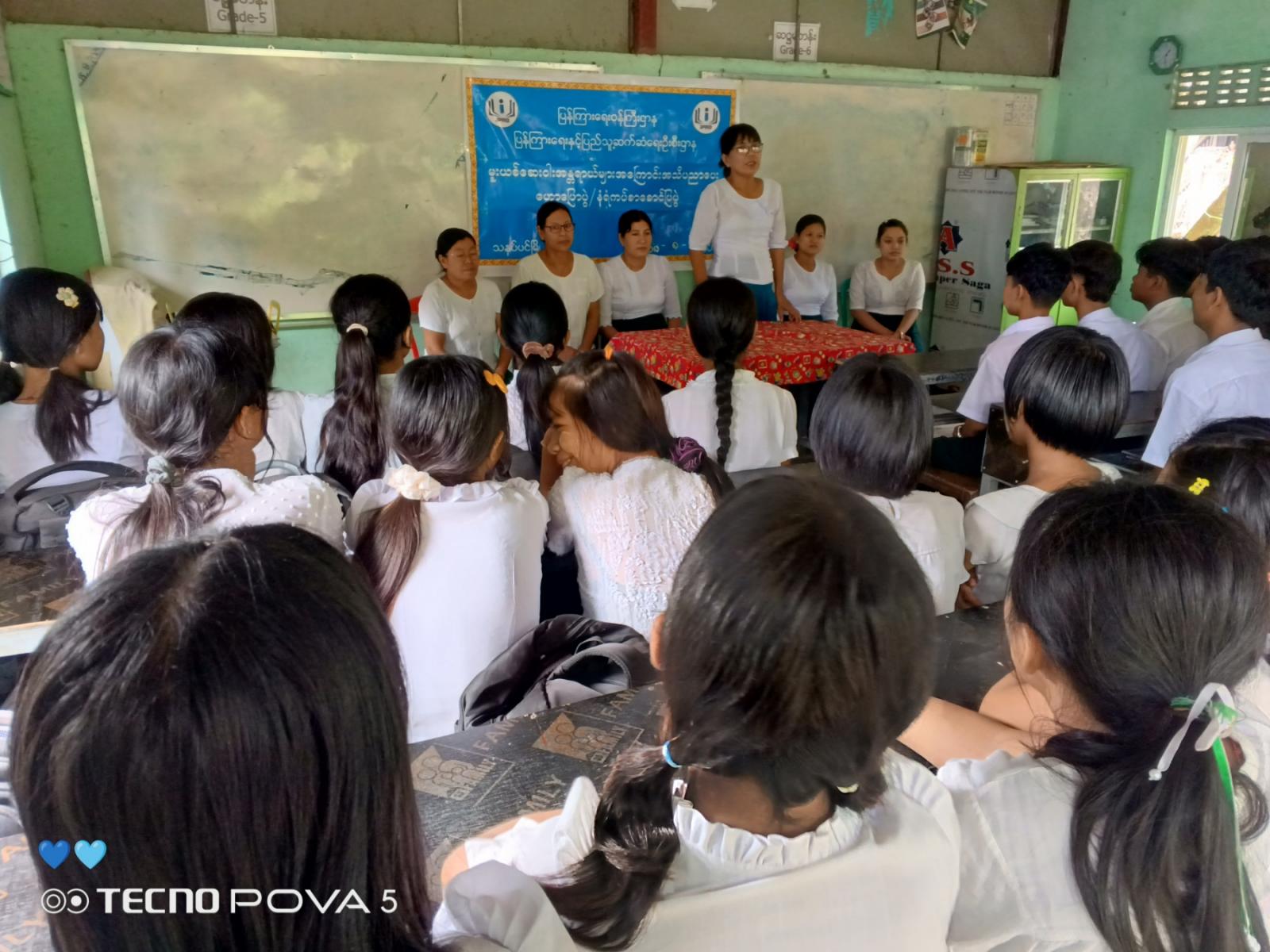 ရှေးဦးစွာ ဟောပြောပွဲတွင် ကျောင်းအုပ်ဆရာမကြီးဒေါ်အေးအေးချိုက အဖွင့်အမှာစကားပြောကြားပြီး သနပ်ပင်မြို့နယ်ပြန်ကြားရေးနှင့်ပြည်သူ့ဆက်ဆံရေးဦးစီးဌာန ဒု-ဦးစီးမှူးဒေါ်မိမိခိုင်က ကျောင်းသားလူငယ်များဗလငါးတန်ဖွံ့ဖြိုးပြီး၊ ထူးချွန်ထက်မြတ်သူများဖြစ်လာစေရန်၊ သိသင့်သိထိုက်သည့်အကြောင်းအရာများကိုသိရှိနိုင်ရန်အတွက် ကျောင်းစာအပြင် ပြင်ပဗဟုသုတစာများကိုဖတ်ကြရန်နှင့် မူးယစ်ဆေးဝါးအန္တရာယ်များအကြောင်း၊ ကလေးအလုပ်သမားအကြောင်း အရာများကို အသိပညာပေးဟောပြောခဲ့သည်။