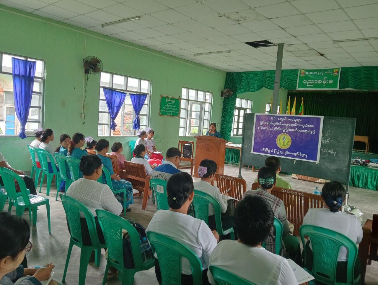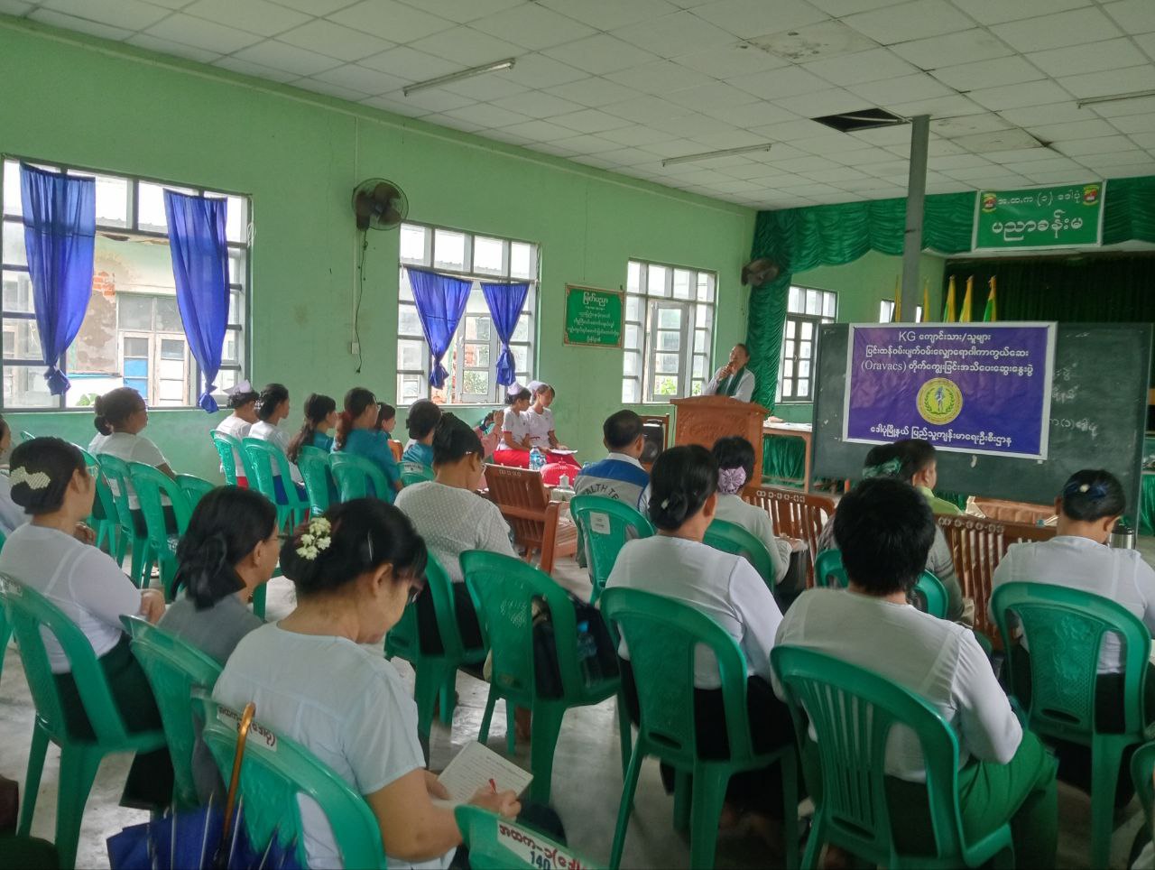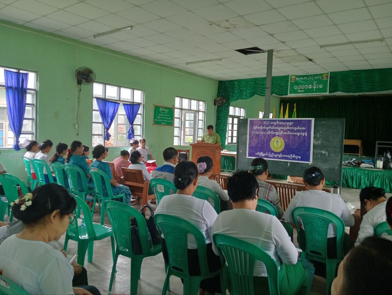 ဗိုလ်တထောင်ခရိုင်၊ ဒေါပုံမြို့နယ်တွင် KG ကျောင်းသား၊ ကျောင်းသူများ ပြင်းထန်၀မ်းပျက်၊ ၀မ်းလျှောရောဂါကာကွယ်ဆေး(Oravacs)တိုက်ကျွေးခြင်း အသိ ပညာပေးဆွေးနွေးပွဲကို ယမန်နေ့ နံနက် ၁၀ နာရီအချိန်က အ.ထ.က(၁) ၊ ပညာခန်းမတွင် ကျင်းပခဲ့ကြောင်းသိရသည်။