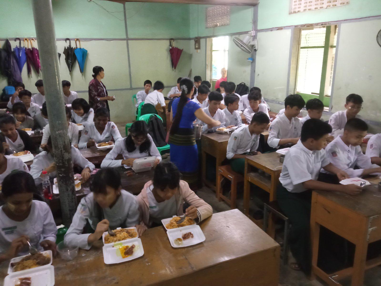 အဆိုပါကျောင်းတွင် ကျောင်းသား၊ ကျောင်းသူ(၂၄၀၀)ဦးရှိပြီး ကျန်ရှိနေသည့် ကျောင်းသား၊ ကျောင်းသူများအား အာဟာရကျွေးမွေးခြင်းကို ဆက်လက်ကျွေးမွေးသွားမည်ဖြစ်ကြောင်း ကျောင်းအုပ်ဆရာမကြီး ဒေါ်ဖြူဖြူသောင်းထံမှ သိရသည်။