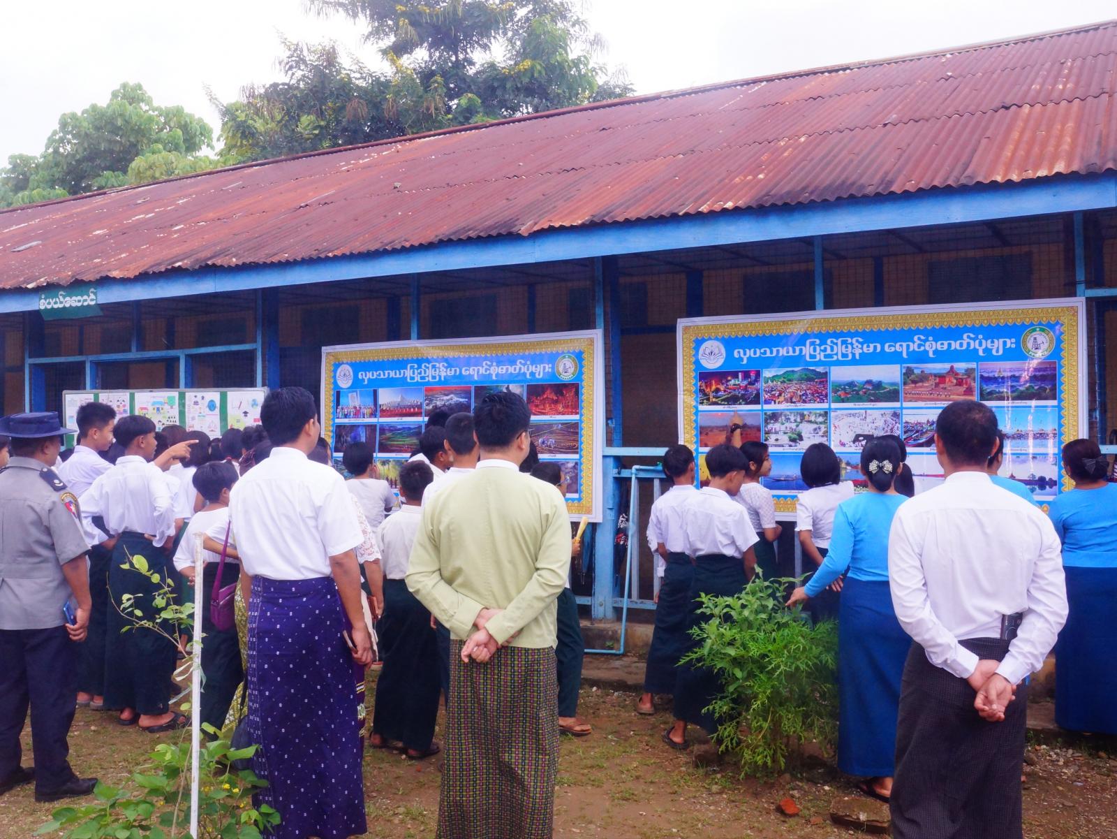 ဆက်လက်၍ အခမ်းအနားသို့ တက်ရောက်လာကြသည့် တာဝန်ရှိသူများနှင့် ကျောင်းသား ကျောင်းသူများက ပြန်ကြားရေးနှင့်ပြည်သူ့ဆက်ဆံရေးဦးစီးဌာနမှ ခင်းကျင်းပြသထားသည့် စာအုပ်ပြပွဲနှင့် လှပသာယာပြည်မြန်မာ ရောင်စုံဓာတ်ပုံပြဘုတ်များကို လှည့်လည်ကြည့်ရှုအားပေးခဲ့ကြကြောင်း သိရသည်။