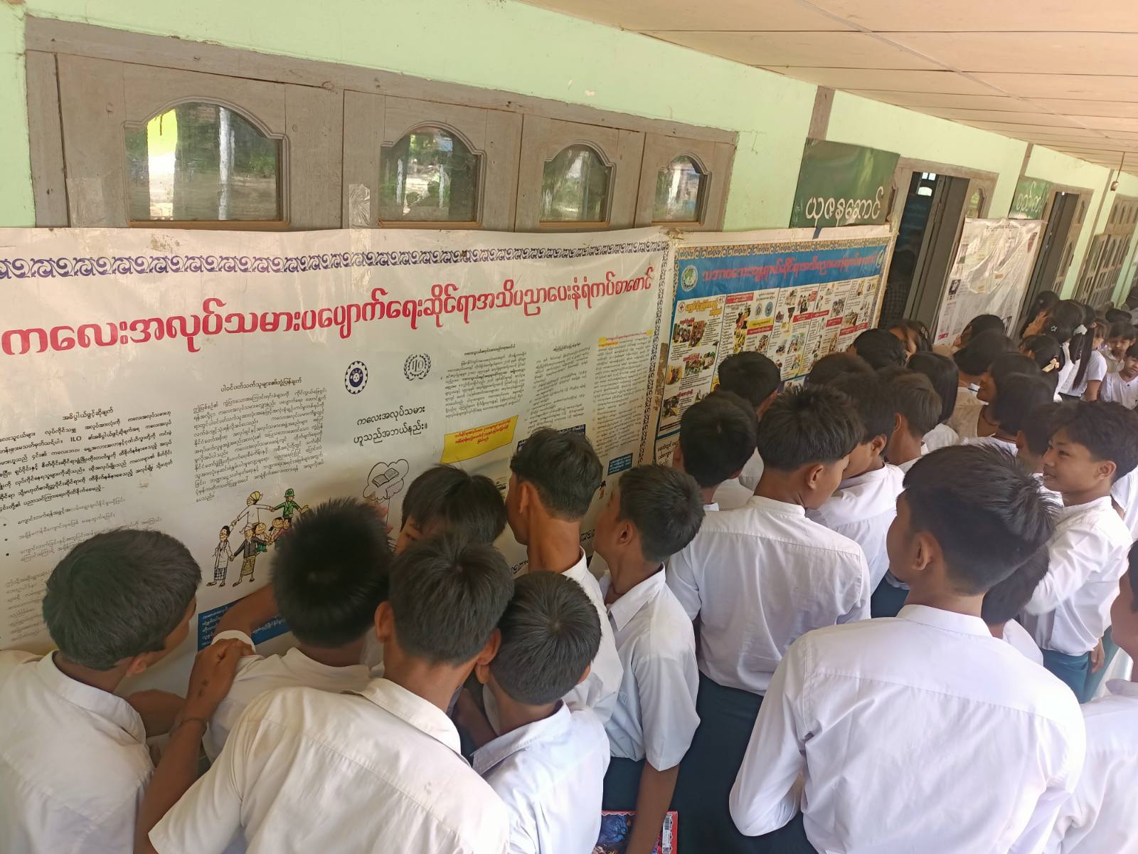 နယ်လှည့်ကွင်းဆင်းဆောင်ရွက်ရာတွင် ပြန်ကြားရေးနှင့်ပြည်သူ့ဆက်ဆံရေးဦးစီးဌာနမှ ဦးစီးအရာရှိ ဒေါ်ညွန့်ညွန့်စိန်က စာအုပ်စာပေဖတ်ရှုခြင်းဖြင့် ရရှိလာမည့် အကျိုးကျေးဇူးများကို ကျောင်းသား၊ ကျောင်းသူများအားပြောကြားပြီး ဒုတိယဦးစီးမှူး ဒေါ်မြင့်မြင့်မိုးက ကလေးသူငယ်များ ကိုယ်ကာယ၊ ဥာဏစွမ်းရည်များ ဖွံ့ဖြိုးစေရေး၊ အချင်းချင်းပူးပေါင်းဆောင်ရွက်တတ်စေရေး၊ တစ်ဦးနှင့်တစ်ဦး ချစ်ခင်ရင်းနှီးမှုများ ရရှိစေရေး အသိပညာပေးပြောကြားကာ ရုပ်ပုံစာအုပ်ဖြင့် ပုံပြင်ပြောသရုပ်ပြသခြင်း၊ ဘုတ်ပြားပြဇာတ်ပြသခြင်းတို့ကို ဆောင်ရွက်ခဲ့သည်။ ထို့နောက် ကျောင်းသား၊ ကျောင်းသူများအား နံရံကပ်စာစောင်နှင့် စာအုပ်စာစောင်များကို ပြသဖတ်ရှုစေခဲ့ကြောင်း သိရသည်။