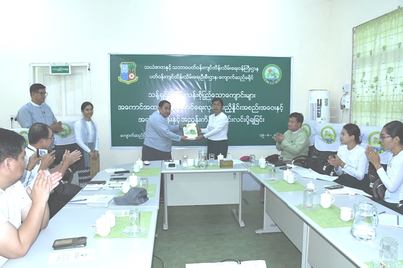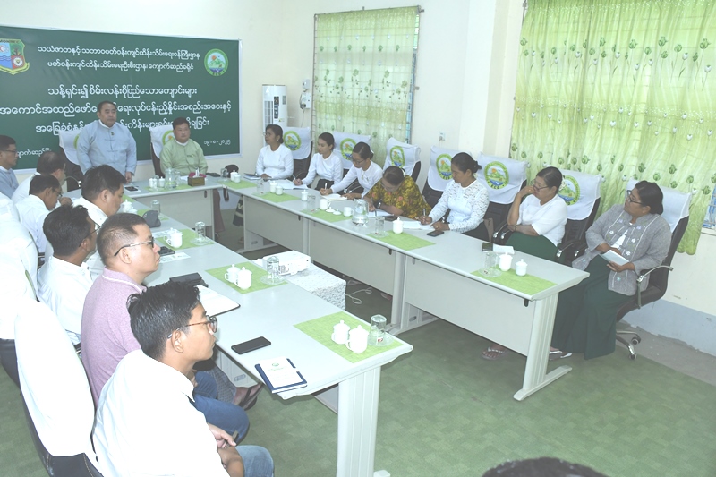 ဆက်လက်ပြီး တိုင်းဒေသကြီးပတ်ဝန်းကျင်ထိန်းသိမ်းရေးဦးစီးဌာနမှ ညွှန်ကြားရေးမှူး ဦးကျော်အောင်မိုးက သန့်ရှင်း၍စိမ်းလန်းစိုပြည်သောကျောင်းများ၏ မျှော်မှန်းချက်၊ ပန်းတိုင်၊ ရည်ရွယ်ချက်များအကြောင်းနှင့် အကောင်အထည်ဖော်ဆောင်ရွက်ရာ၌ အခြေခံစံနှုန်းနှင့်အညွှန်းကိန်းများအကြောင်း၊ ရရှိလာမည့်အကျိုးကျေးဇူးများ၊ ဆုရွေးချယ်ခြင်းနှင့်ဆုချီးမြှင့်ရေးဆိုင်ရာများ အား ရှင်းလင်းဆွေးနွေးသည်။ ထို့နောက်ခရိုင်ပညာရေးမှူး ဒေါက်တာဥမ္မာကြည်က အခြေခံပညာ ဦးစီးဌာနအနေဖြင့် သန့်ရှင်း၍စိမ်းလန်းစိုပြည်သောကျောင်းများ အကောင်အထည်ဖော် ဆောင်ရွက်သွားမည့်အခြေအနေများအား ပြန်လည်ရှင်းလင်းဆွေးနွေးခဲ့ပြီး တိုင်းဒေသကြီးပတ်ဝန်းကျင်ထိန်းသိမ်းရေး ဦးစီးဌာနမှညွှန်ကြားရေးမှူးက ခရိုင်ပညာရေးမှူးထံသို့ ပတ်ဝန်းကျင်ဆိုင်ရာ ဆရာကိုင်လက်စွဲစာအုပ်များ ပေးအပ်သည်။