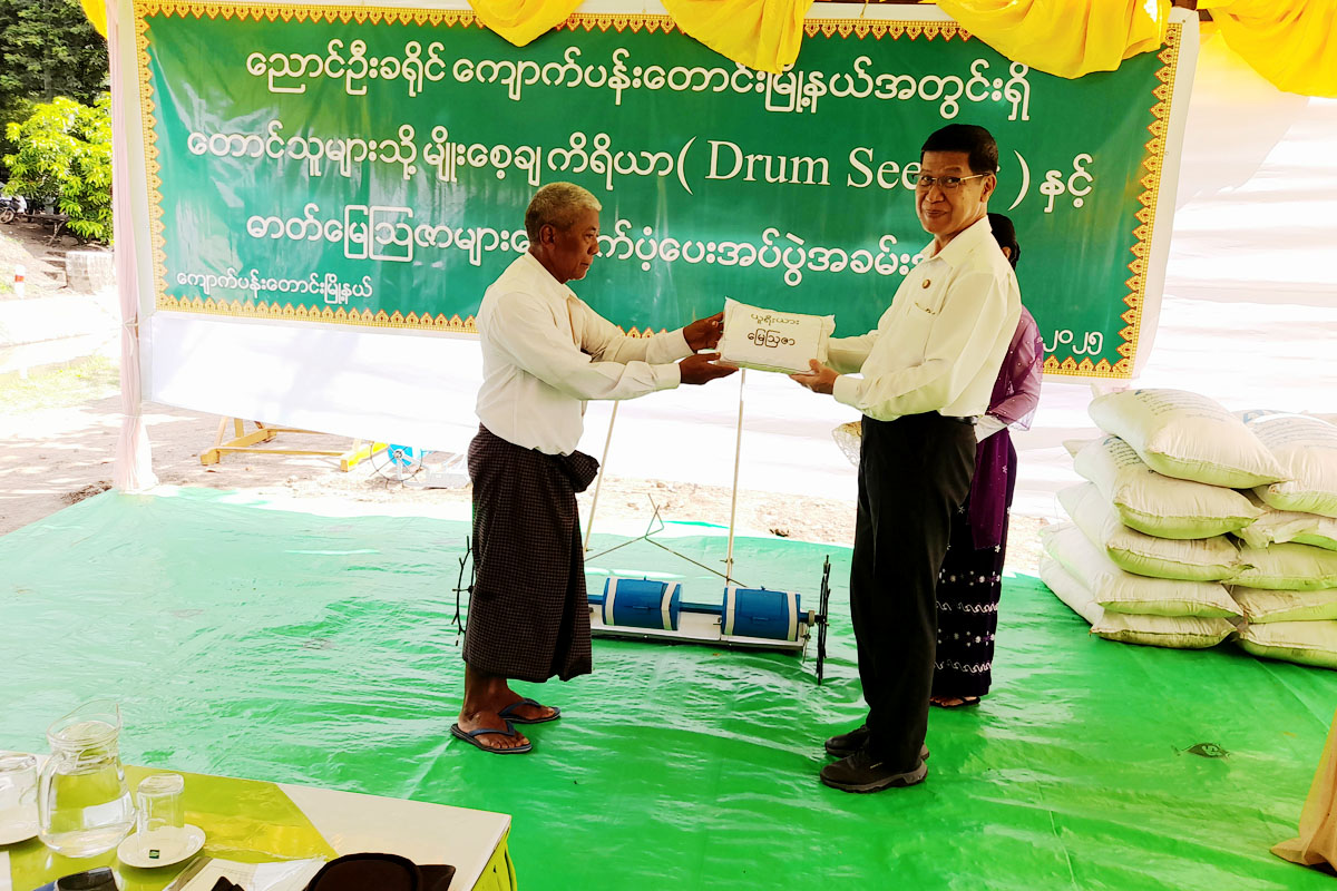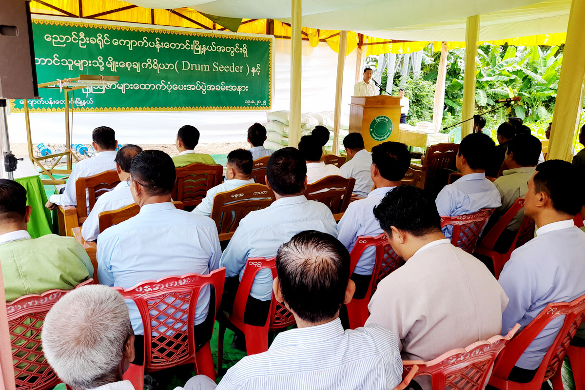 အဆိုပါ မျိုးစေ့ချ ကိရိယာ(Drum Seeder)နှင့် ယူရီယား ဓာတ်မြေဩဇာများ ထောက်ပံ့ပေးအပ်ပွဲနှင့် မိုးစပါးစိုက်ပျိုး သရုပ်ပြသခြင်း အခမ်းအနားများကို မြို့နယ်အဆင့်ဌာနဆိုင်ရာတာဝန်ရှိသူများနှင့် တောင်သူ(၂၆၃)ဦး တက်ရောက်ခဲ့ကြသည်။