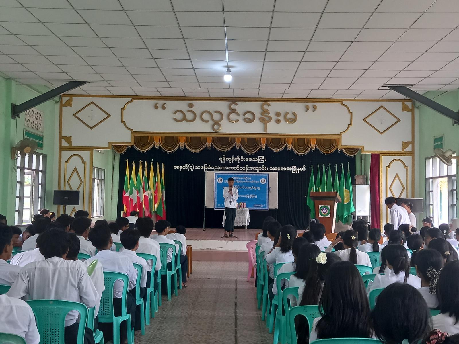 ရန်ကုန်တိုင်းဒေသကြီး၊ ဗိုလ်တထောင်ခရိုင်၊ သာကေတမြို့နယ်၊ ပြန်ကြားရေးနှင့်ပြည်သူ့ဆက်ဆံရေးဦးစီးဌာနနှင့် အခြေခံပညာဦးစီးဌာနတို့ ပူးပေါင်း၍ စာဖတ်ရှိန်မြှင့်တင်ရေးလှုပ်ရှားမှု ကျပန်းစကားပြောပြိုင်ပွဲနှင့် ဟောပြောပွဲကို ယမန်နေ့ နံနက် (၁၀) နာရီချိန်က အမှတ်(၄)အခြေခံပညာအထက်တန်းကျောင်းသံလွင်ခန်းမ၌ ကျင်းပခဲ့သည်။