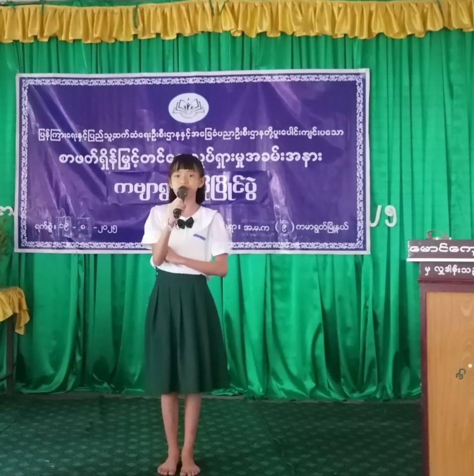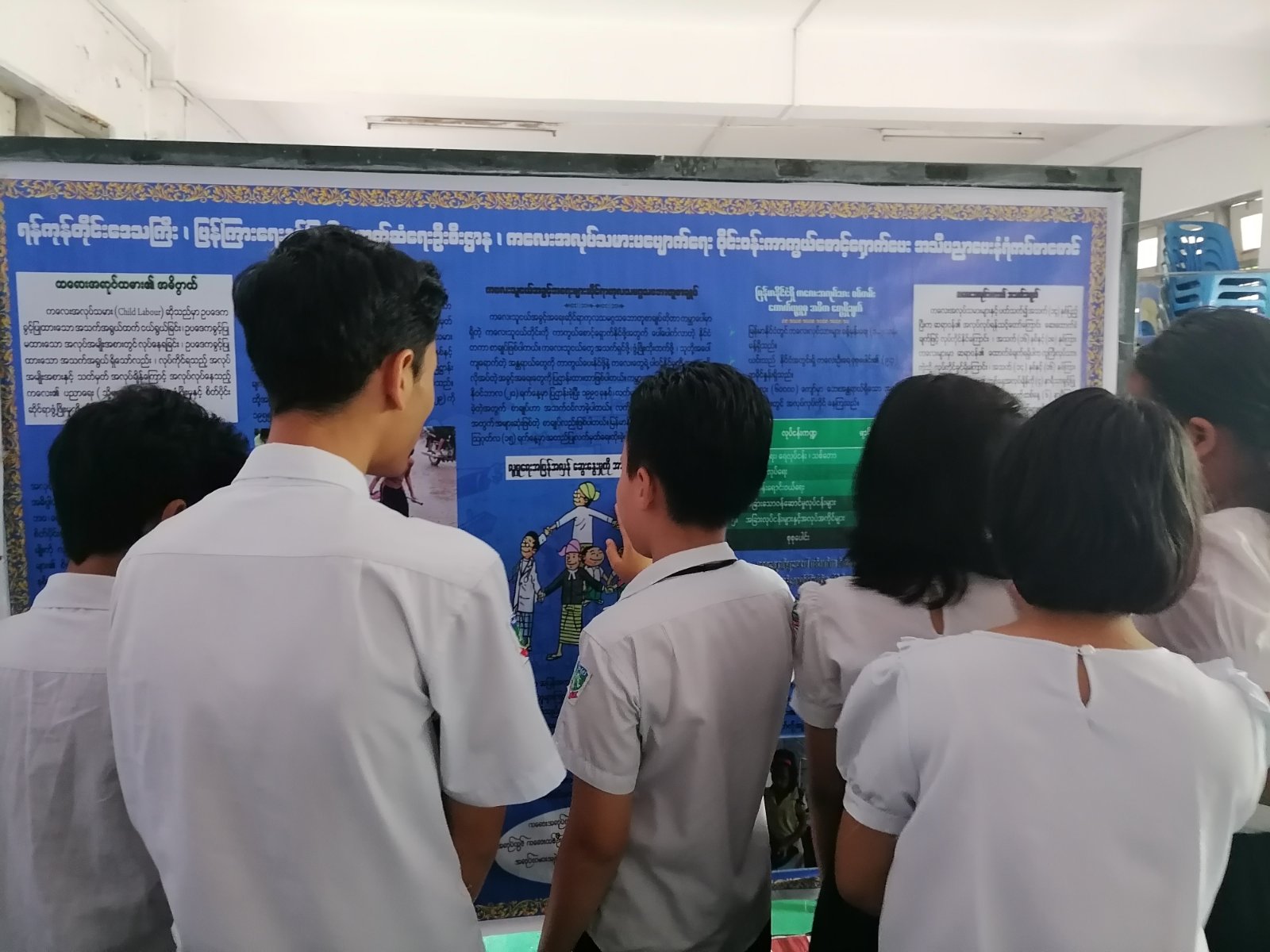 ထို့နောက် ကျောင်းသူ/သားများအား စာဖတ်ရှိန်မြှင့်တင်ရေးအတွက် စာအုပ်စာစောင်များအား စိတ်ဝင်းစားစွာဖတ်ရူလေ့လာခြင်းနှင့် ပြသထားသောစာဖတ်ရှိန်မြှင့်တင်ရေး စာကြည်တိုက်ဆိုင်ရာအသိပညာပေးနံရံကပ်စာစောင်၊ ကလေးအလုပ်သမားပပျောက်ရေးအသိပညာပေး နံရံကပ်စာစောင်နှင့် မူးယစ်ဆေးဝါးအန္တရာယ်အသိပညာပေး နံရံကပ်စာစောင်အား စိတ်ပါဝင်စားစွာလေ့လာကြည့်ရှုကြပြီး ဉာဏစွမ်းရည်ပြိုင်ပွဲများကိုလည်းဆောင်ရွက်ပေးခဲ့ကြကြောင်း သိရသည်။