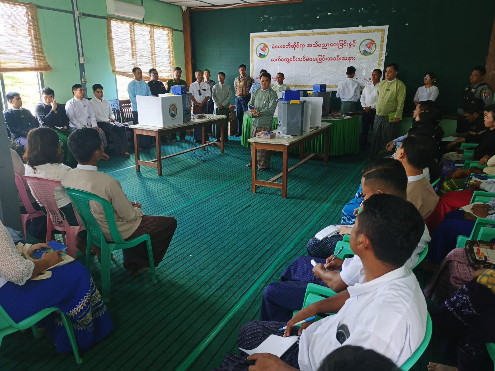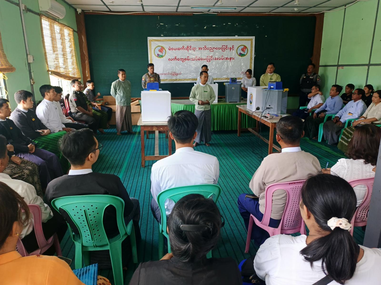 မန္တလေးတိုင်းဒေသကြီး မဟာအောင်မြေမြို့နယ်၌ မြန်မာအီလက်ထရောနစ်မဲပေးစက်ဆိုင်ရာ အသိပညာပေးခြင်းနှင့် လက်တွေ့စမ်းသပ်မဲပေးခြင်းအခမ်းအနားကို ဩဂုတ် ၂၀ ရက်က မြို့နယ်အထွေထွေအုပ်ချုပ်ရေးဦးစီးဌာန အစည်းအဝေးခန်းမ၌ ကျင်းပသည်။