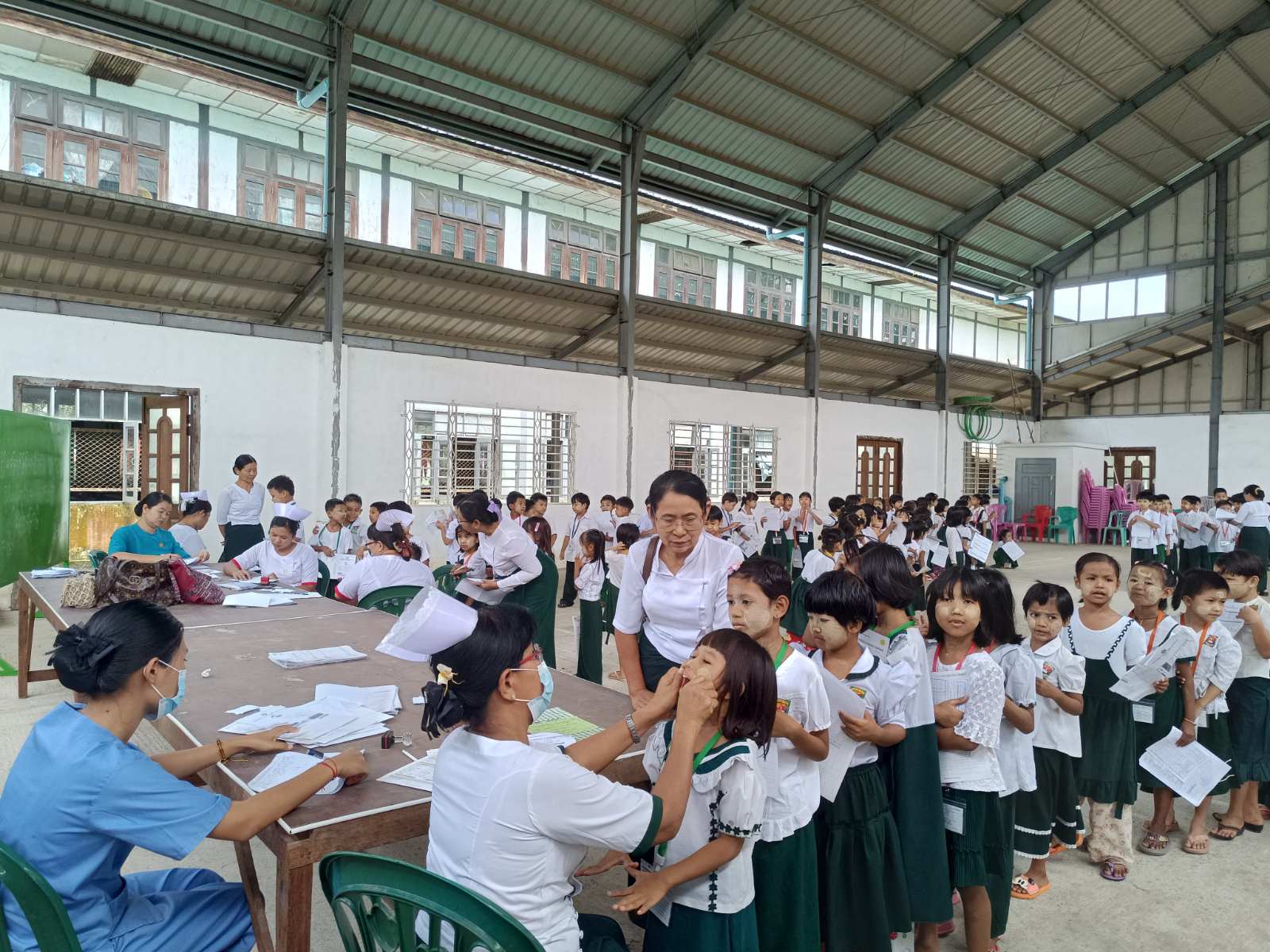 ထိုသို့ကွင်းဆင်း၍ ကျောင်းကျန်းမာရေးလုပ်ငန်းများဆောင်ရွက်ပေးရာတွင် မြို့နယ်စီမံခန့်ခွဲရေးနှင့်အုပ်ချုပ်ရေးကော်မတီဝင်ဦးခင်ဇော်၊ မြို့နယ်ကုသရေးဌာနမှ သွားဘက်ဆိုင်ရာဆရာဝန် ဒေါက်တာတင်နိုင်နှင့် ကျောင်းကျန်းမာရေးအဖွဲ့မှ ကျန်းမာရေးမှူးဒေါ်ကြည်ကြည်လွင်နှင့် အဖွဲ့သည်ကျောင်းသား/သူများအား သွားနှင့်ခံတွင်းစစ်ဆေးခြင်း၊ အထွေထွေကျန်းမာရေးစစ်ဆေးပေးခြင်း၊ မျက်စိစမ်းသပ်ခြင်း၊ စနစ်တကျသွားတိုက်နည်းကို သရုပ်ပြလေ့ကျင့်သင်ကြားပေးခြင်း၊ သန့်လေးသန့်၊ စနစ်တကျလက်ဆေးနည်း၊ အာဟာရအုပ်စုအကြောင်း၊ သွားနှင့်ခံတွင်း၊ သွေးလွန်တုပ်ကွေးရောဂါနှင့် ဆေးလိပ်နှင့်ဆေးရွက်ကြီးအကြောင်းတို့ကို ကျန်းမာ ရေးအသိပညာပေးဟောပြောခြင်းများဆောင်ရွက်ခဲ့ပြီး ကျောင်းသား/သူ(၂၄၅)ဦးအား သွားကျန်းမာရေးစောင့်ရှောက်မှုပေးခြင်း၊ (၇၉)ဦးအား Dressing ပြုလုပ်ပေးခြင်း၊ (၄၀)ဦးအား သွားနှုတ်ပေးခဲ့ကြောင်းသိရှိရသည်။
