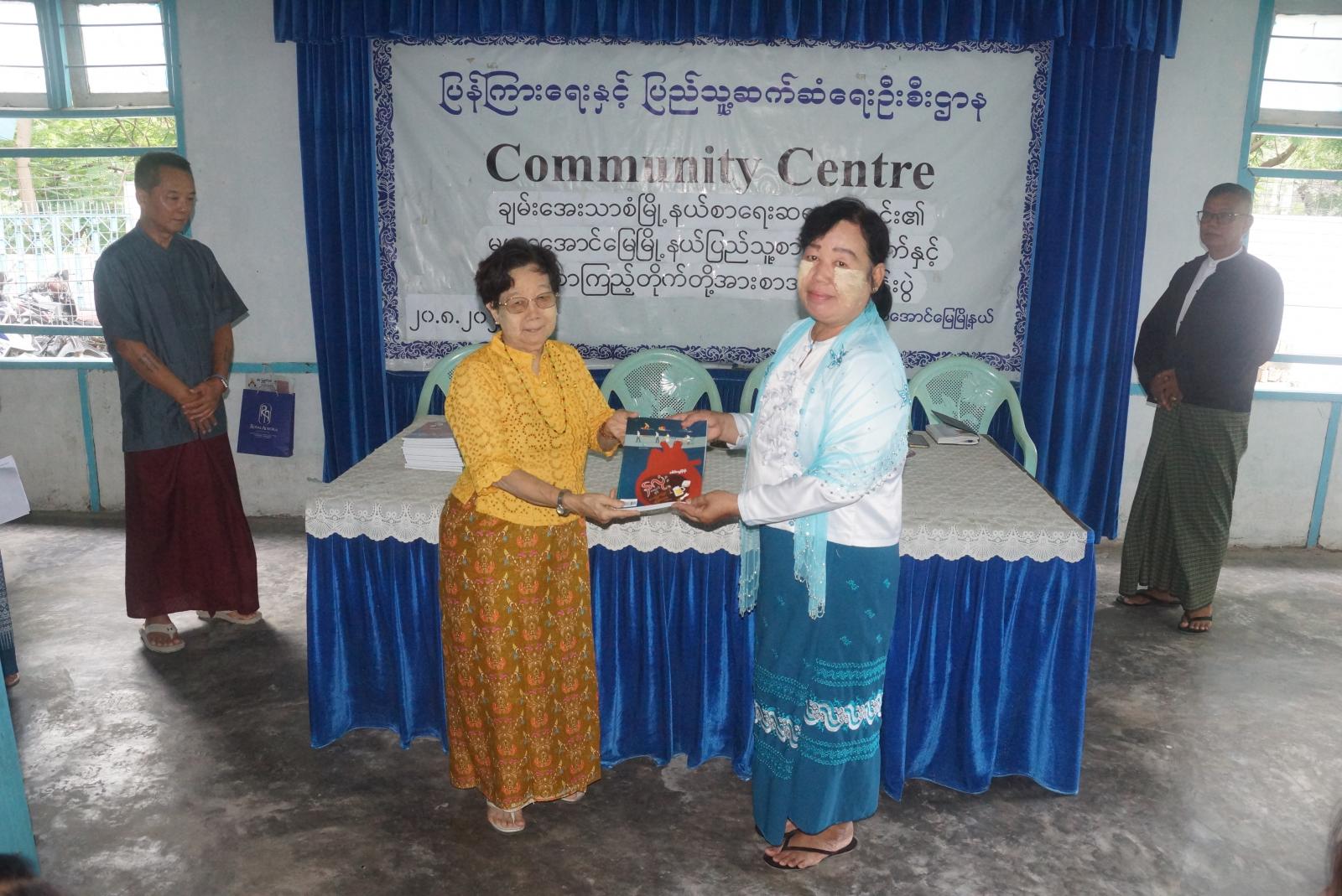 ရှေးဦးစွာ ခရိုင်ပြန်ကြားရေးနှင့်ပြည်သူ့ဆက်ဆံရေးဦးစီးဌာန လက်ထောက်ညွှန်ကြားရေးမှူး ဒေါ်မြင့်မြင့်သန်းက အဖွင့်အမှာစကားပြောကြားပြီးနောက် ချမ်းအေးသာစံမြို့နယ် စာရေးဆရာအသင်းဆရာမကြီး ဒေါ်နုနုကြည် (အမေ့အိမ်)က စာအုပ်လှူဒါန်းရခြင်း၏ ရည်ရွယ် ချက်များကို ရှင်းလင်းပြောကြားခဲ့သည်။