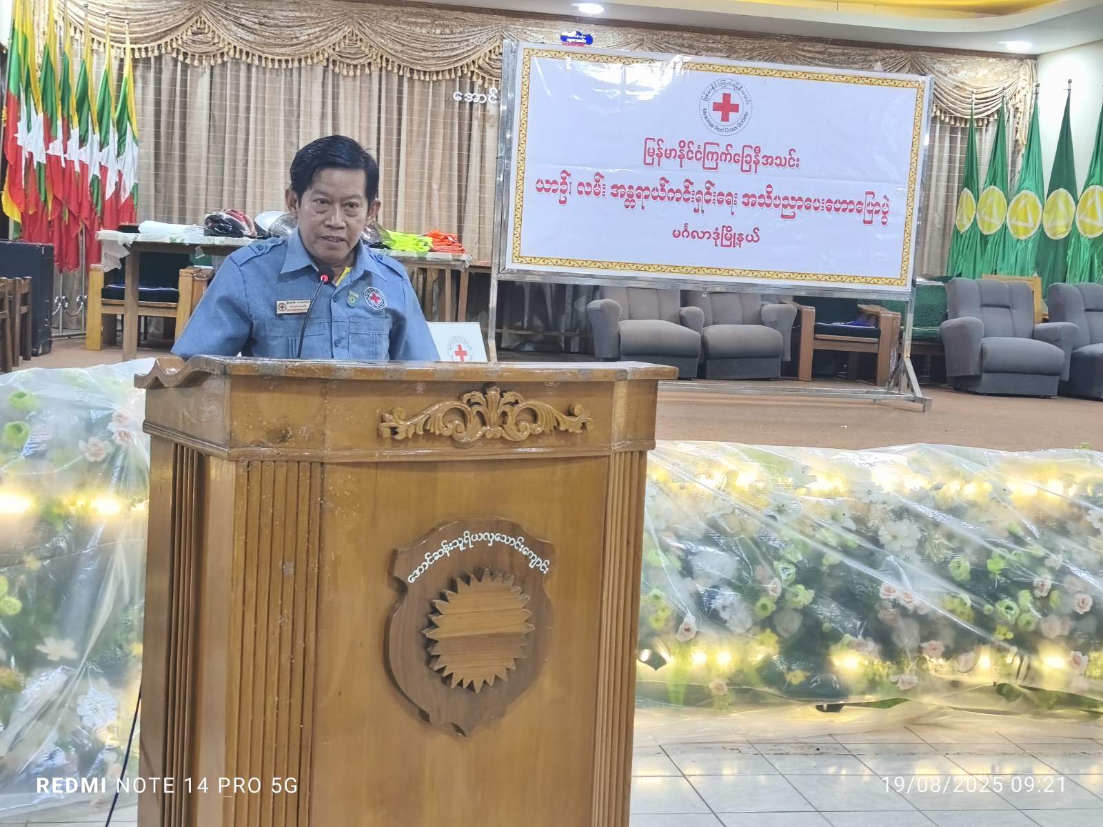 ယင်းနောက် ခရိုင်ကြက်ခြေနီကြီးကြပ်မှုကော်မတီဥက္ကဋ္ဌ ဦးဝင်းသီဟက အမှတ်တရလက်ဆောင်ပေးအပ်ခဲ့ရာ ဆရာဦးနိုင်လင်းက လက်ခံယူခဲ့ပြီး ခရိုင်ကြက်ခြေနီတပ်ဖွဲ့မှူး ဦးအေးသွင်က ကျေးဇူးတင်စကားပြောကြားခဲ့ပြီးနောက် စုပေါင်းမှတ်တမ်းဓာတ်ပုံရိုက်ကူးခဲ့ကြသည်။ အခမ်းအနားသို့ ဆရာ၊ ဆရာမများ၊ ကျောင်းသား၊ ကျောင်းသူများ(၄၂၀)ဦး တက်ရောက်ခဲ့ကြောင်း သိရသည်။
