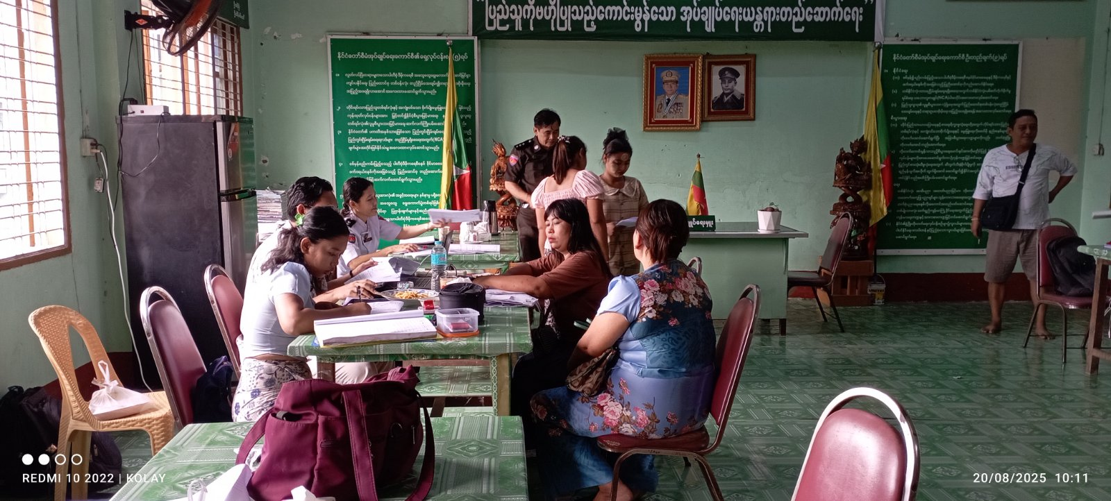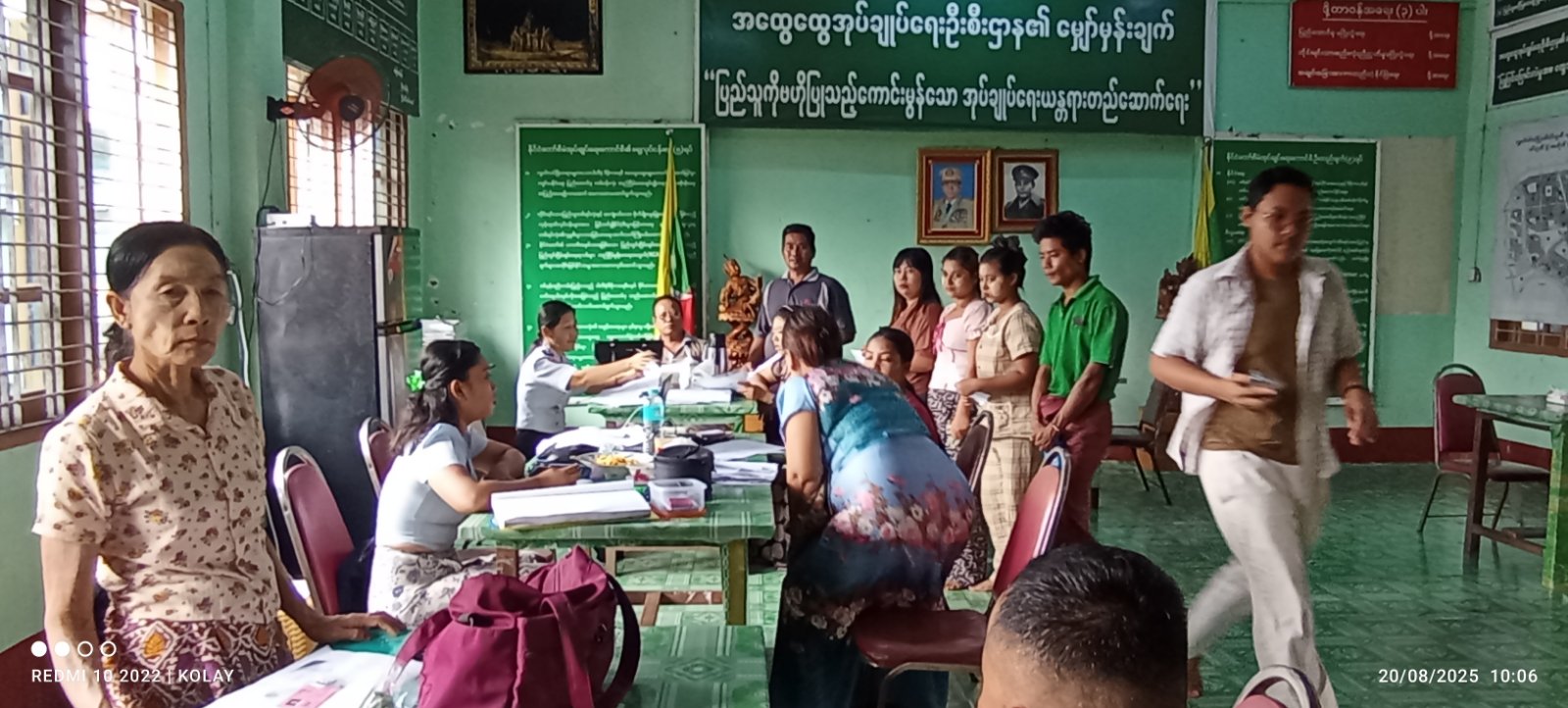 ရန်ကုန်တိုင်းဒေသကြီး၊ မရမ်းကုန်းခရိုင်၊ မြောက်ဥက္ကလာမြို့နယ်အတွင်း လူဝင်မှုကြီးကြပ်ရေးနှင့်ပြည်သူ့အင်အားဝန်ကြီးဌာန၊ မြို့နယ်ဦးစီးမှူးဦးဆောင်ကြီးကြပ်မှုဖြင့် မြို့နယ်ဦးစီးမှူးရုံးမှ၀န်ထမ်းများက ယနေ့နံနက်ပိုင်းက ရွှေပေါက်ကံရပ်ကွက်အတွင်း ပန်းခင်းစီမံချက် ၃ ဖြင့် အိမ်ထောင်စုလူဦးရေစာရင်းနှင့် နိုင်ငံသားစိစစ်ရေးကတ်ပြားများ ကွင်းဆင်းဆောင်ရွက်ပြုလုပ်ပေးခဲ့ကြောင်းသိရသည်။