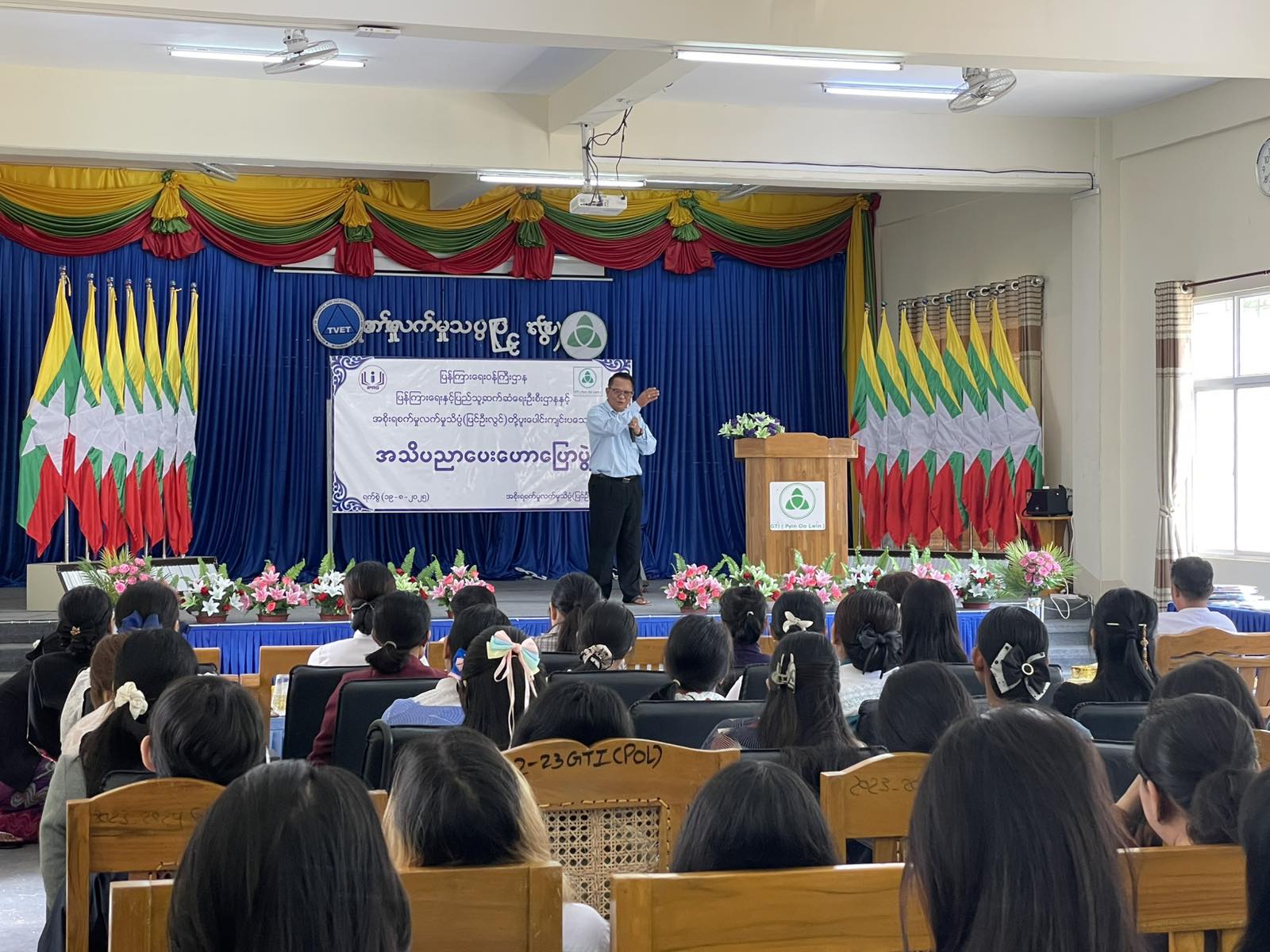 လူငယ်ကဏ္ဍကိုမြှင့်တင်စေရန် ရည်ရွယ်၍ လူငယ်ရေးရာအသိပညာပေးဟောပြောပွဲကို ယမန်နေ့နံနက် (၁၀) နာရီက မန္တလေးတိုင်းဒေသကြီး၊ ပြင်ဦးလွင်မြို့နယ် အစိုးရစက်မှုလက်မှုသိပ္ပံ (ပြင်ဦးလွင်)တွင် ကျင်းပရာ ရှေးဦးစွာ အစိုးရစက်မှုလက်မှုသိပ္ပံ(ပြင်ဦးလွင်)မှ ကျောင်းအုပ်ဆရာမကြီးက အဖွင့်အမှာစကား ပြောကြားပြီး ပြန်ကြားရေးနှင့်ပြည်သူ့ဆက်ဆံရေးဦးစီးဌာန ပြင်ဦးလွင်ခရိုင်ရုံးမှ လက်ထောက်ညွှန်ကြားရေးမှူး ဦးကျော်မင်းဦးက ဟောပြောပွဲကျင်းပရသည့် ရည်ရွယ်ချက်အား ရှင်းလင်း ပြောကြားသည်။