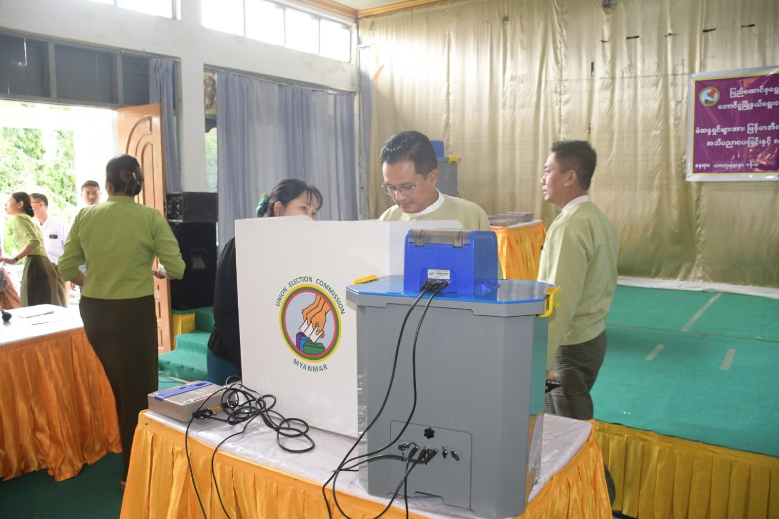 မြန်မာအီလက်ထရောနစ်မဲပေးစက်အသုံးပြု၍ လက်တွေ့မဲပေးလေ့လာခြင်းများကို ပဲခူးတိုင်းဒေသကြီးအတွင်းရှိ ခရိုင်နှင့် မြို့နယ်များတွင် ဆောင်ရွက်လျက်ရှိကြောင်း သိရသည်။