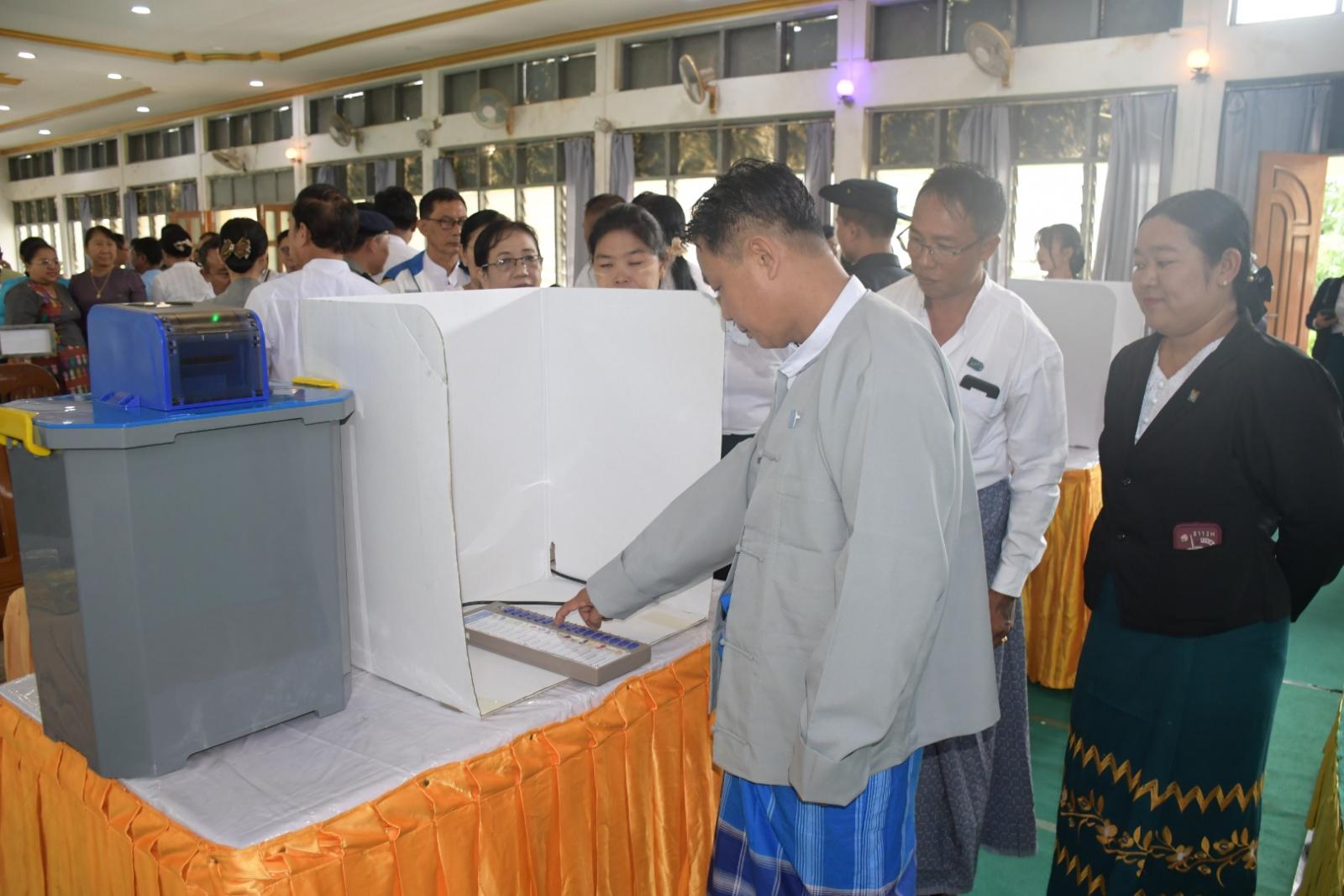 ပဲခူးတိုင်းဒေသကြီး၊ တောင်ငူမြို့၊ ကေတုရတနာခန်းမ၌ တောင်ငူခရိုင် ရွေးကောက်ပွဲကော်မရှင်အဖွဲ့ခွဲမှ ကြီးမှူး၍ ခရိုင်နှင့်မြို့နယ်အဆင့် ဌာနဆိုင်ရာများ၊ နိုင်ငံရေးပါတီများမှ တာဝန်ရှိသူများ၊ မဲဆန္ဒရှင်ပြည်သူများအား မြန်မာအီလက်ထရောနစ်မဲပေးစက်ဆိုင်ရာအသိပညာပေးခြင်းနှင့် လက်တွေ့စမ်းသပ်မဲပေးခြင်းကို ယမန်နေ့နံနက် ၁၀ နာရီအချိန်က ကျင်းပခဲ့သည်။