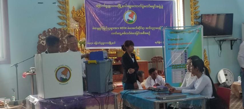 ရန်ကုန်တိုင်းဒေသကြီး၊ မရမ်းကုန်းခရိုင်၊ မြောက်ဥက္ကလာပမြို့နယ်အတွင်းရှိ မဲဆန္ဒရှင်ပြည်သူများအား မြန်မာအီလက်ထရောနစ်မဲပေးစက်ဆိုင်ရာအသိပညာပေးခြင်းနှင့် လက်တွေ့စမ်းသပ်မဲပေးလေ့လာခြင်းကို ယမန်နေ့က ရွှေပေါက်ကံရပ်ကွက် စက်မှုဇုန်တွင် ပြုလုပ်ခဲ့ကြသည်။