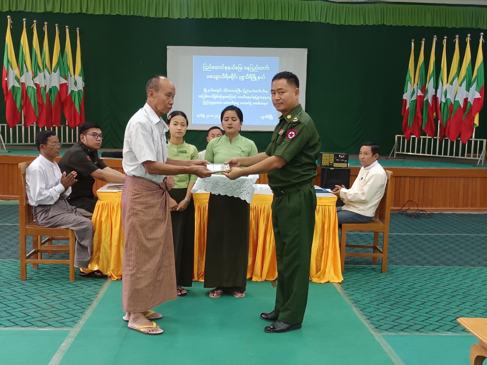 ပုဗ္ဗသီရိမြို့နယ်အတွင်း ဒေသအသီးသီးမှ အကြမ်းဖက်ဖြစ်စဉ်များကြောင့် ယာယီနေရပ်စွန့်ခွာနေရသည့် ပြည်သူများအတွက် ထောက်ပံ့ငွေပေးအပ်ပွဲအခမ်းအနားကို ယမန်နေ့ နေ့လယ်ပိုင်းက အထွေထွေအုပ်ချုပ်ရေးဦးစီးဌာန အစည်းအဝေးခန်းမ၌ ကျင်းပခဲ့သည်။