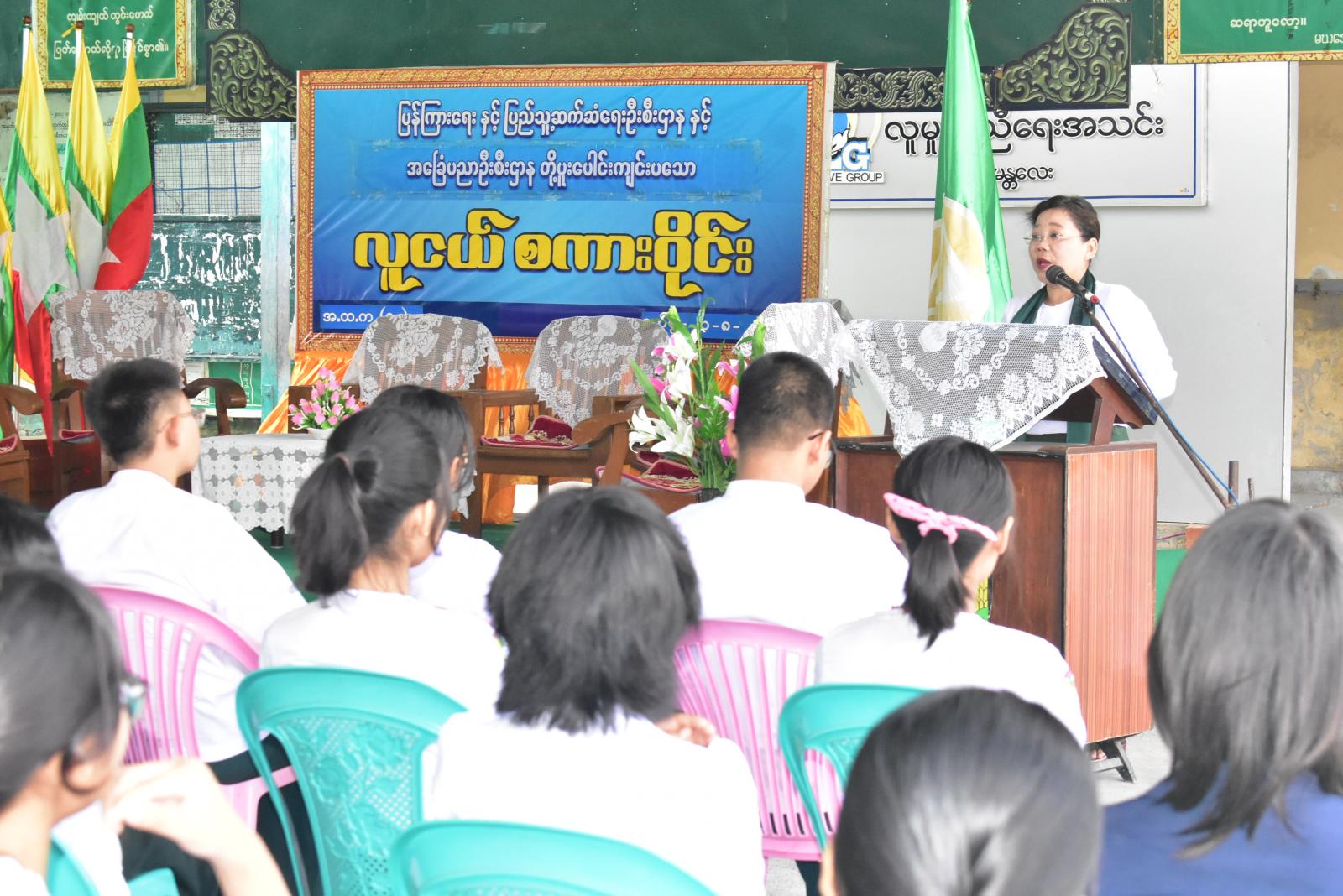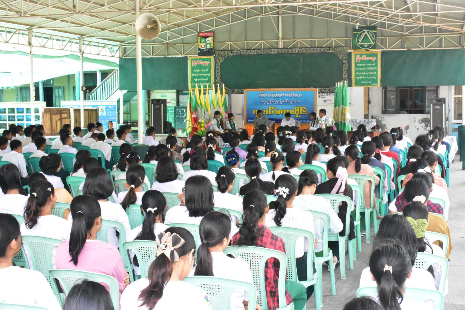 ရှေးဦးစွာ ချမ်းအေးသာစံမြို့နယ် မြို့နယ်ပညာရေးမှူး ဒေါ်ဝါဝါကျော်မှ “ကျောင်းသား၊ ကျောင်းသူများအား စိတ်ဓာတ်မြင့်မားစေရန်နှင့်စည်းကမ်းရှိစေရန်တို့အတွက် ဦးစွာပြောကြားခဲ့ပြီး ကျောင်းသားလူငယ်များ ပညာရေးကို ထူးချွန်စေရန်အတွက် ကြိုးစားအားထုတ်ကြဖို့” အဖွင့်အမှာစကားအနေဖြင့် ပြောကြားခဲ့သည်။