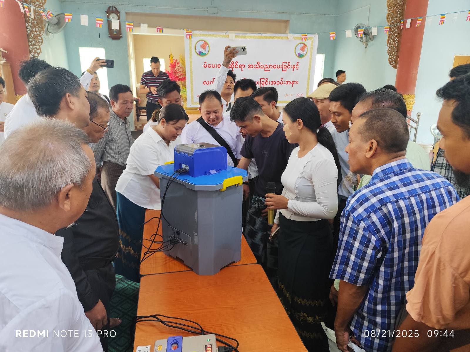အဆိုပါ မဲပေးစက်ဆိုင်ရာ အသိပညာပေးခြင်းနှင့် လက်တွေ့စမ်းသပ်မဲပေးခြင်းများကို မဟာအောင်မြေမြို့နယ် မဟာမြိုင် ၂ ရပ်ကွက်အတွင်းရှိ အများပြည်သူ (၄၀၃)ဦးခန့်က လက်တွေ့စမ်းသပ်မဲပေးခြင်းများ လုပ်ဆောင်ခဲ့ကြောင်း မြို့နယ်ရွေးကောက်ပွဲကော်မရှင်အဖွဲ့ခွဲမှ သိရသည်။