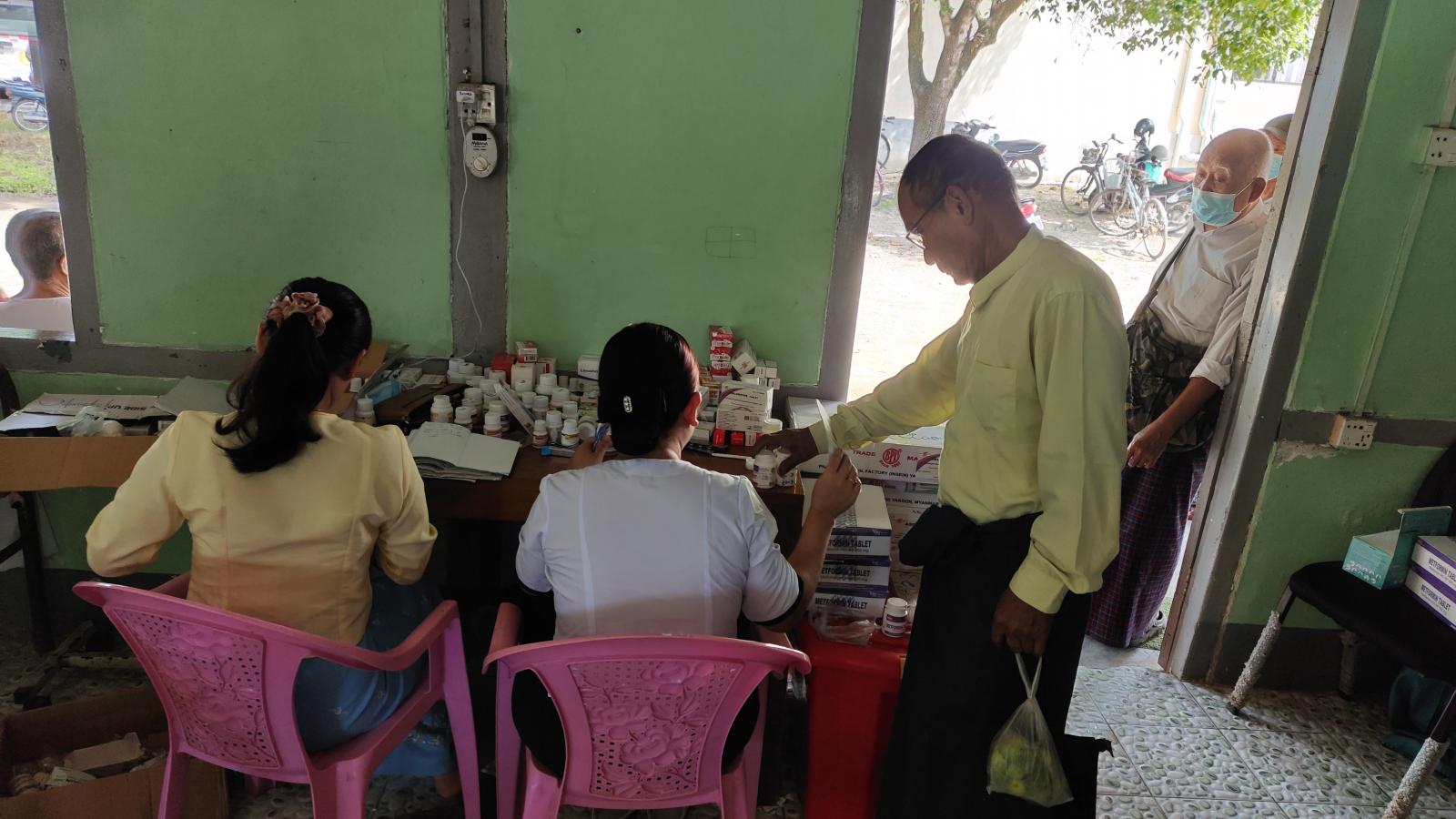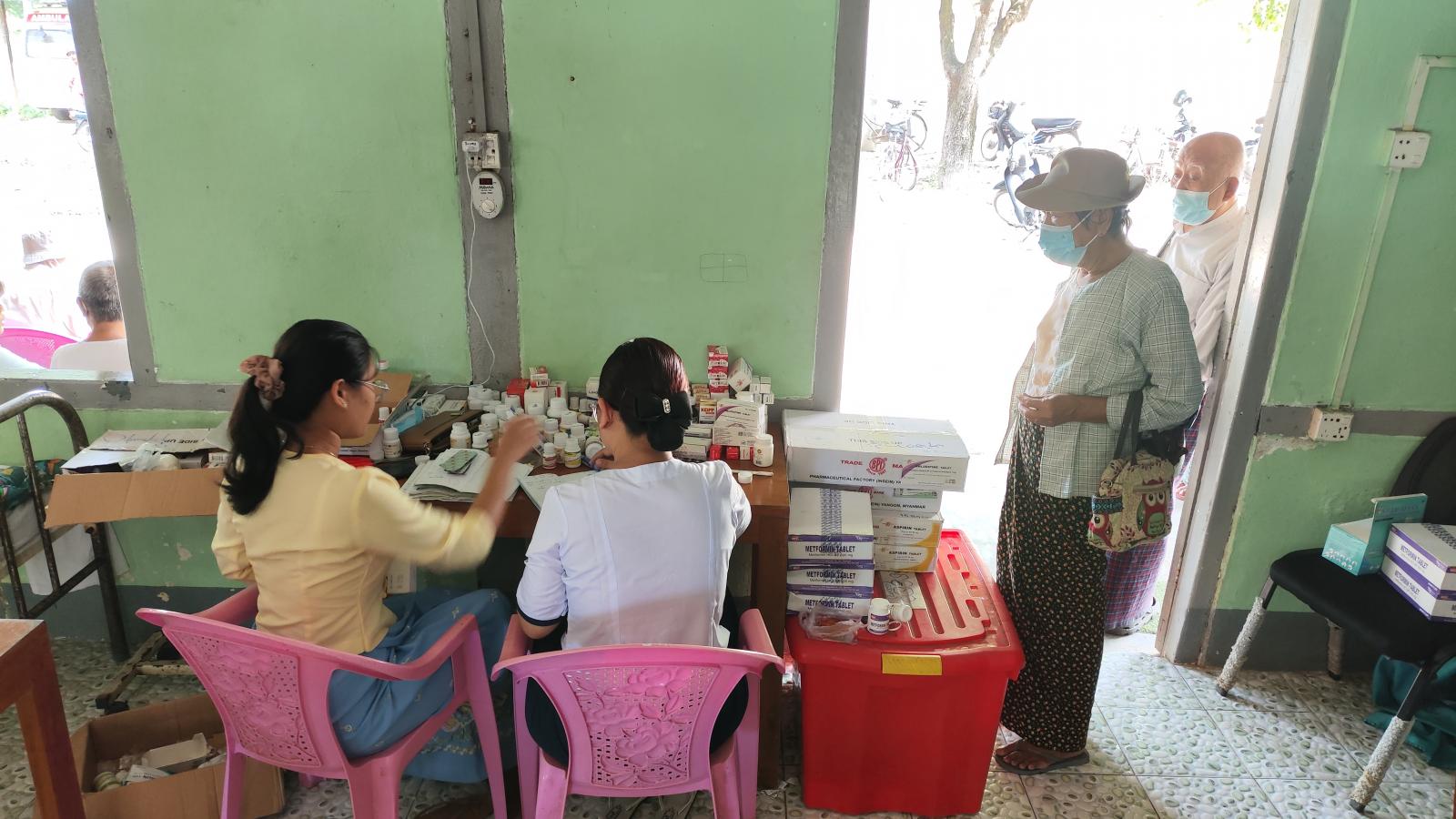 အဆိုပါနိုင်ငံ့ဝန်ထမ်းအငြိမ်းစားများ၏ကျန်းမာရေးအတွက် မြို့နယ်ပြည်သူ့ကျန်းမာရေးဦးစီးဌာနမှူး ဒေါက်တာသန်းထိုက်စိုးဦးဆောင်၍ ဆရာ၊ ဆရာမများက ကိုယ်အပူချိန်များတိုင်းတာ၍လည်းကောင်း၊ ဆီးချို၊ သွေးချို၊ နှလုံးရောဂါ၊ လေးဘက်နာရောဂါ၊ အစာအိမ်ရောဂါ၊ သွေးတိုးရောဂါအစရှိသောရောဂါများကို အခမဲ့ စမ်းသပ်စစ်ဆေးကုသပေးခြင်းနှင့် ဆေးဝါးများ အခမဲ့ပေးလျက်ကြောင်း မြို့နယ်ဆရာဝန်ကြီးဒေါက်တာသန်းထိုက်စိုးထံမှသိရသည်။